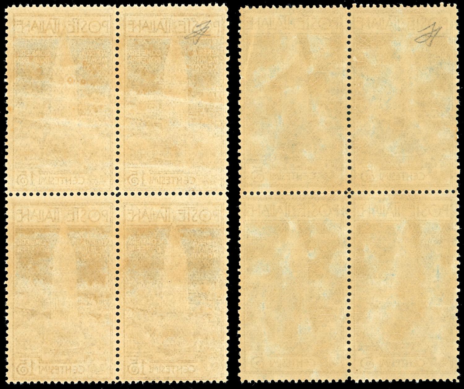1912 - Campanile di Venezia, serie completa (97/98), buona centratura, blocchi di quattro, gomma originale integra, perfetti, ottima qualità. Ferrario.