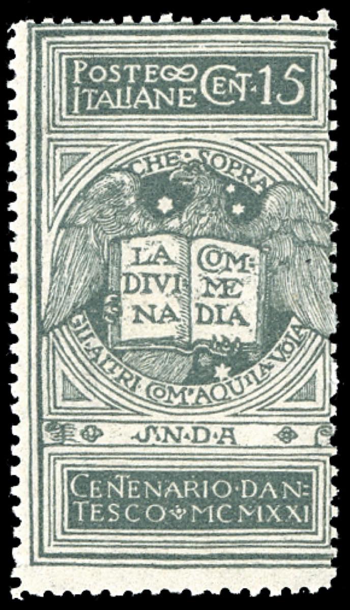 1921 - 15 cent. grigio Dante, non emesso (116A), gomma originale integra, perfetto. Molto fresco. Ferrario.