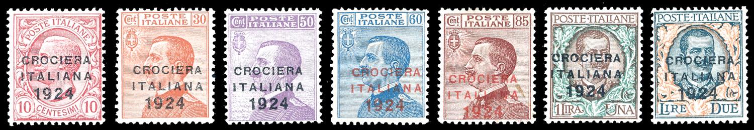 1924 - Crociera Italiana, serie completa (162/168), ben centrati, gomma originale integra, perfetti. Belli. Cert. Ferrario.