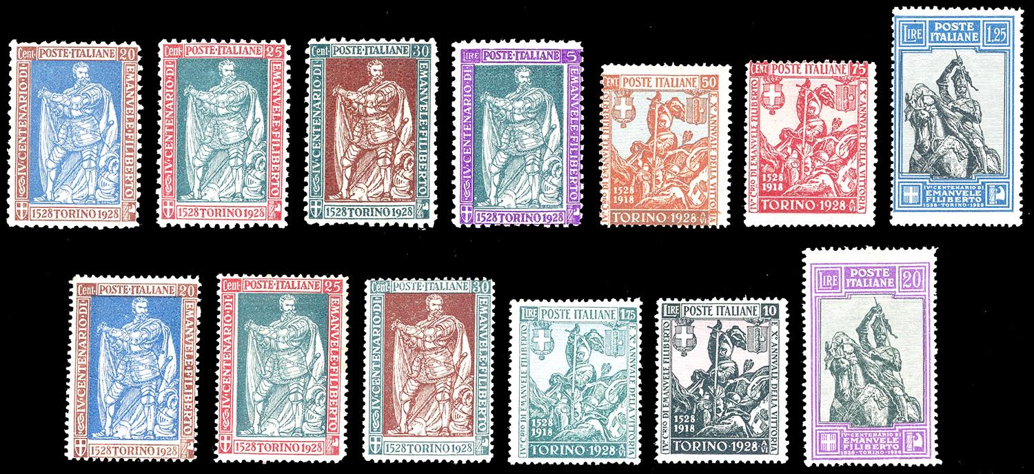 1928 - Emanuele Filiberto, serie completa di 13 valori (226/238), gomma originale integra, perfetti, ottima qualità. Alti valori cert. Ferrario.