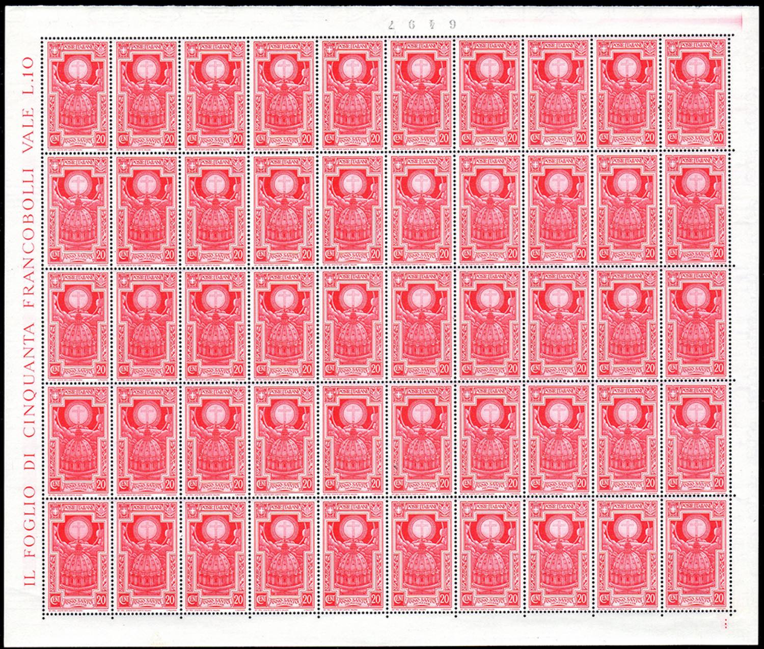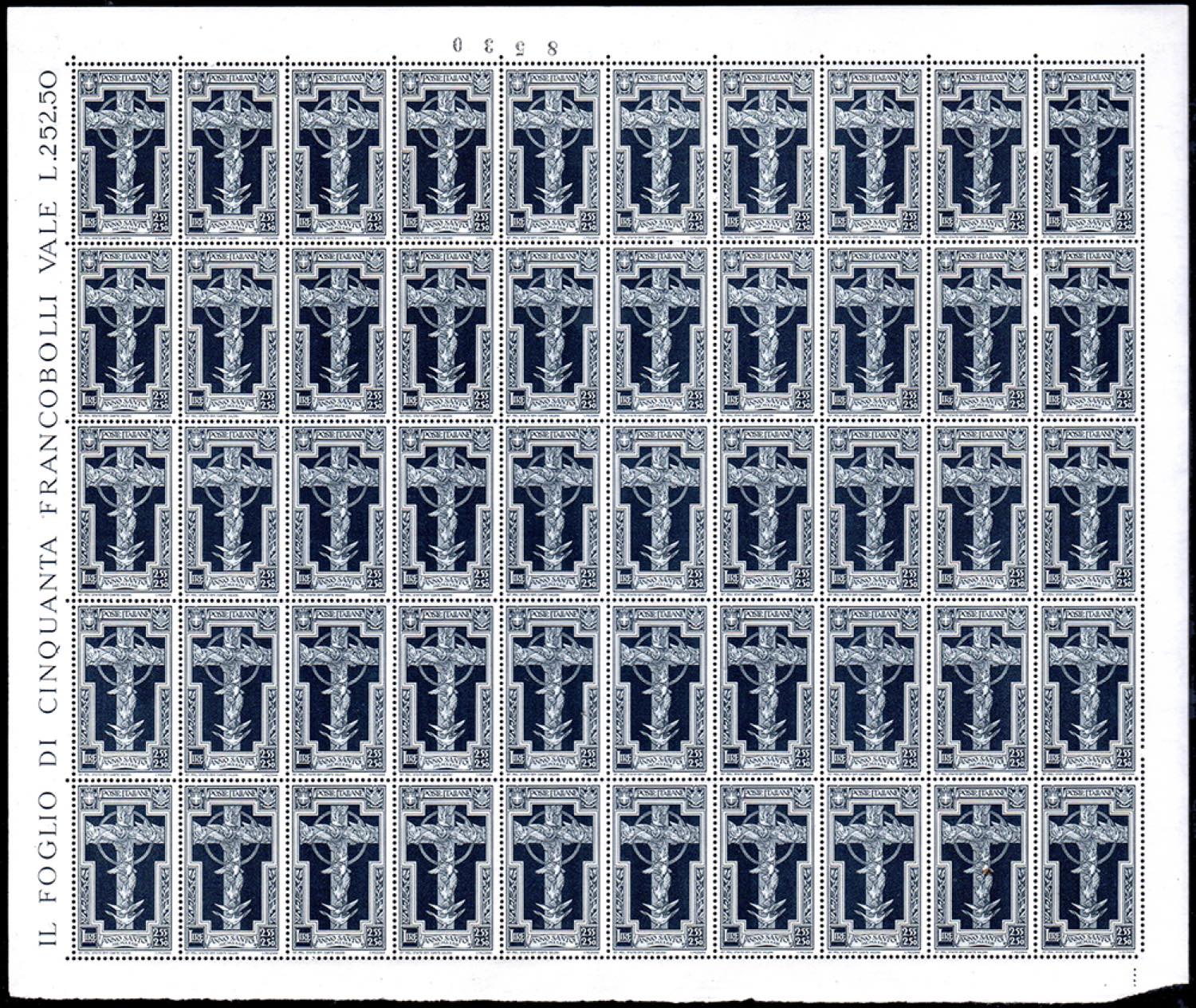 1933 - Anno Santo, serie completa (345/349+A), fogli completi di 50 esemplari, gomma originale integra, perfetti, lievi ossidazioni su ... Read more