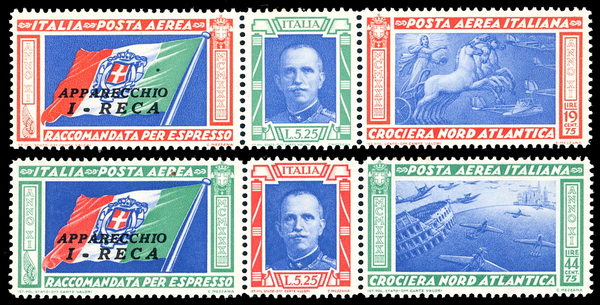 1933 - Trittici I-RECA (51Q/52Q), gomma originale, perfetti. Ferrario.