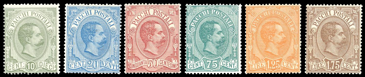 1884/86 - Umberto I, serie completa (1/6), discreta centratura, gomma originale integra, perfetti e molto freschi. Cert. Raybaudi per i due alti valori.