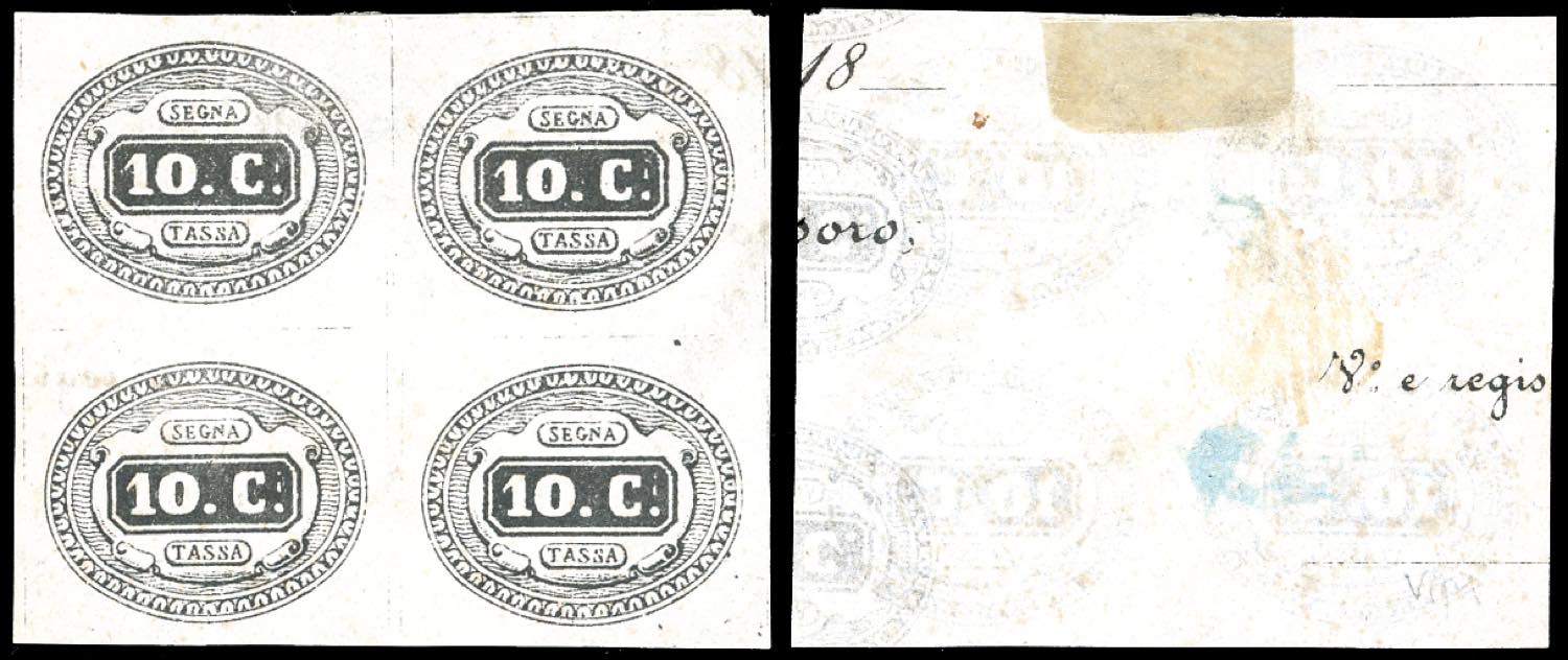 Lot 1162 - 1863 - 10 cent. (1), prova in nero su carta sottile, blocco ...