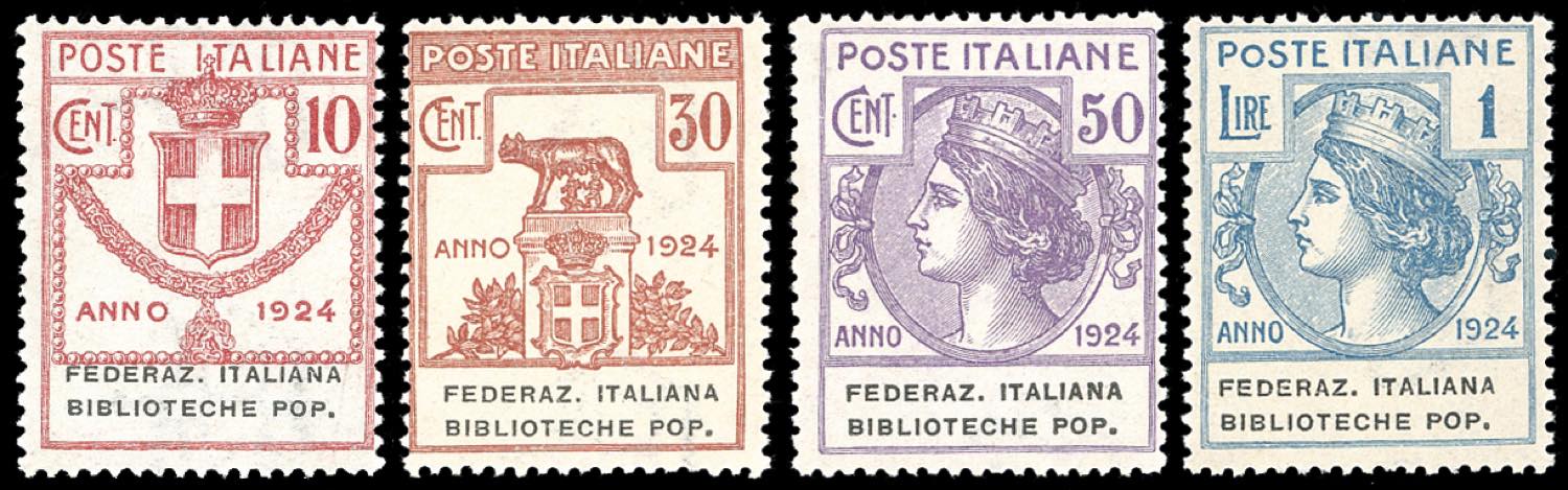 FEDERAZ.ITALIANA BIBLIOTECHE POP. 1924 - Serie completa (34/37), gomma originale integra, perfetti e di ottima qualità. Ferrario.