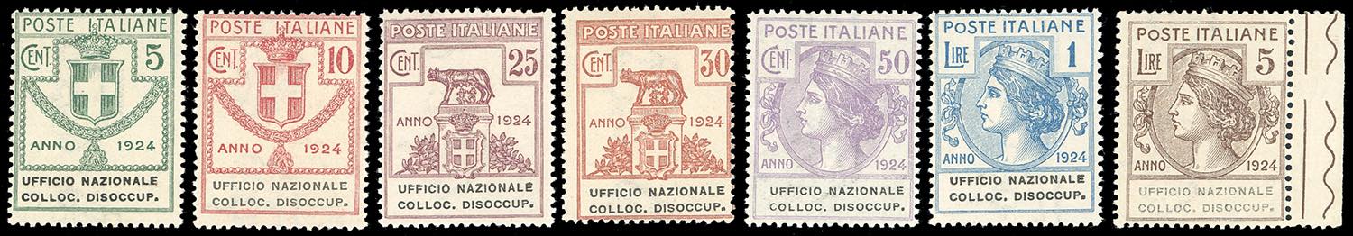 UFFICIO NAZIONALE COLLOC. DISOCCUP. 1924 - Serie completa (62/68), nuovi, gomma originale integra, perfetti. Ottima qualità.