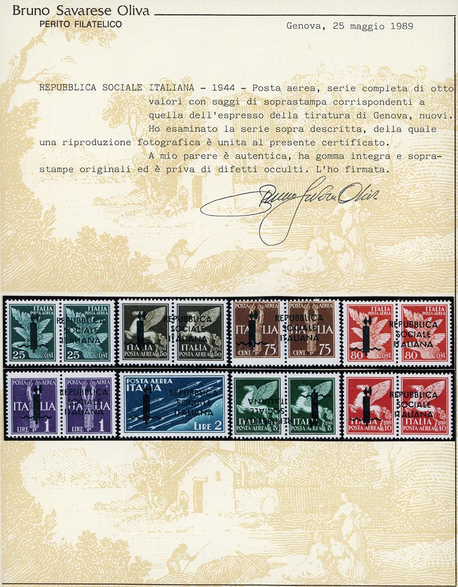 1944 - Soprastampa dell'espresso tiratura di Genova, serie completa (P1/P8), gomma originale integra, perfetti e di ottima qualità. Cert. Savarese, Oliva e Ferrario.