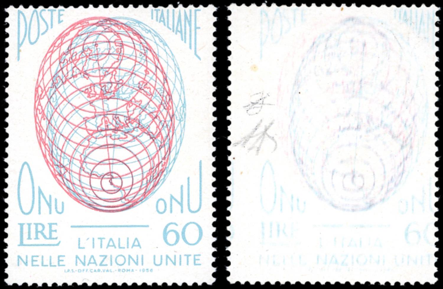 Lot 1406 - 1956 - 60 lire ONU, stampa recto-verso (807c), gomma ...
