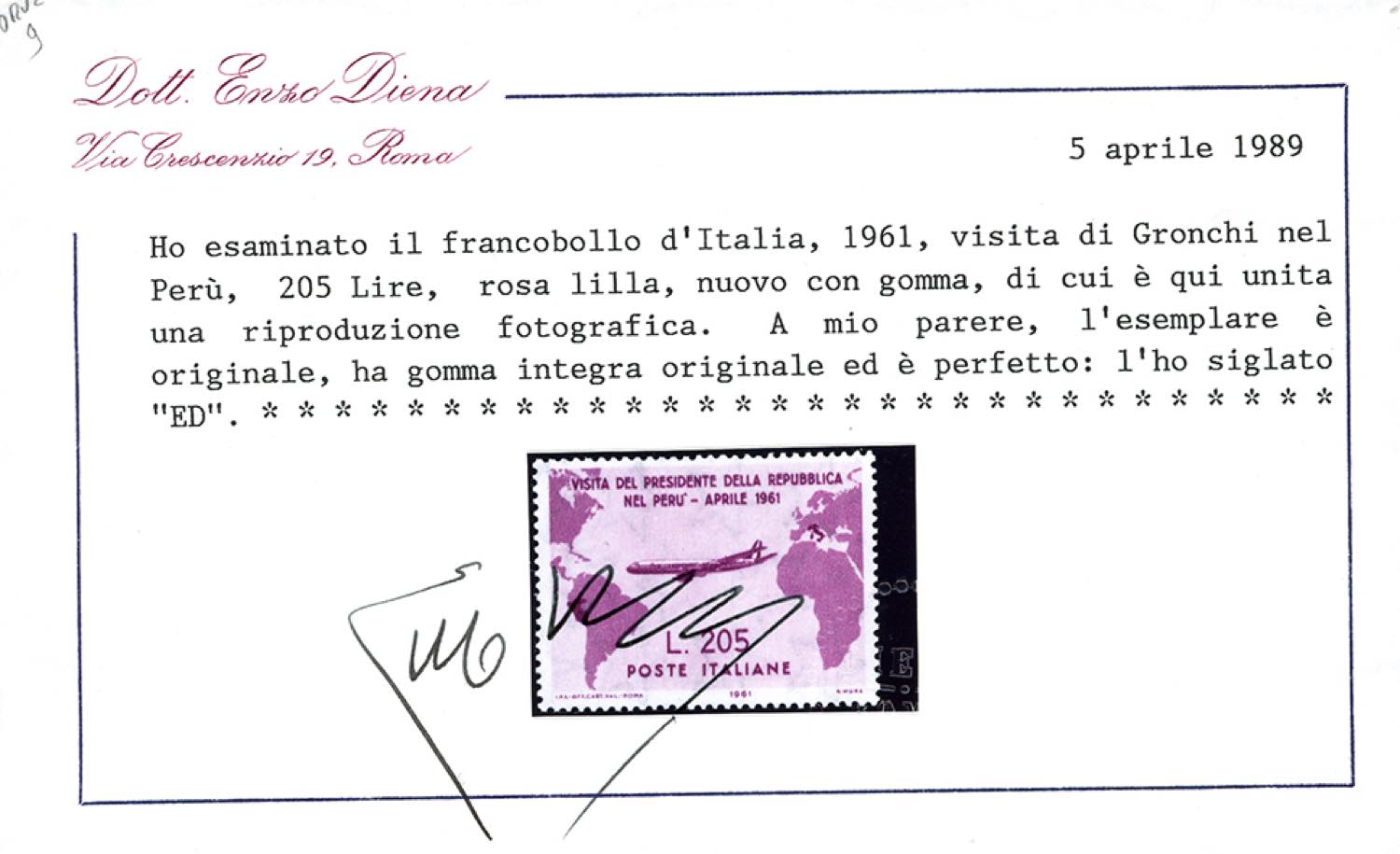Lot 1419 - 1961 - 205 lire Gronchi rosa (921), gomma originale ...