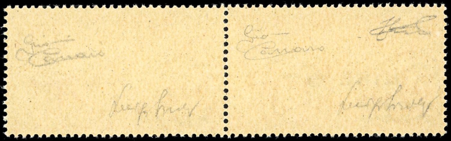 1947 - 6 lire su 3,20 arancio, coppia orizzontale con il secondo esemplare senza la soprastampa "LIRE 6-" e una fila di onduline (135), ... Read more