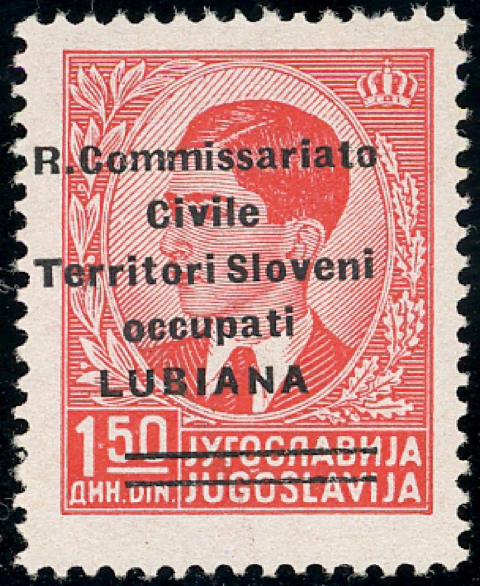 LUBIANA 1941 - 1,50 d. soprastampa modificata fortemente spostata a sinistra e con decalco (34aa), gomma integra, perfetto. Cert. Ferrario.