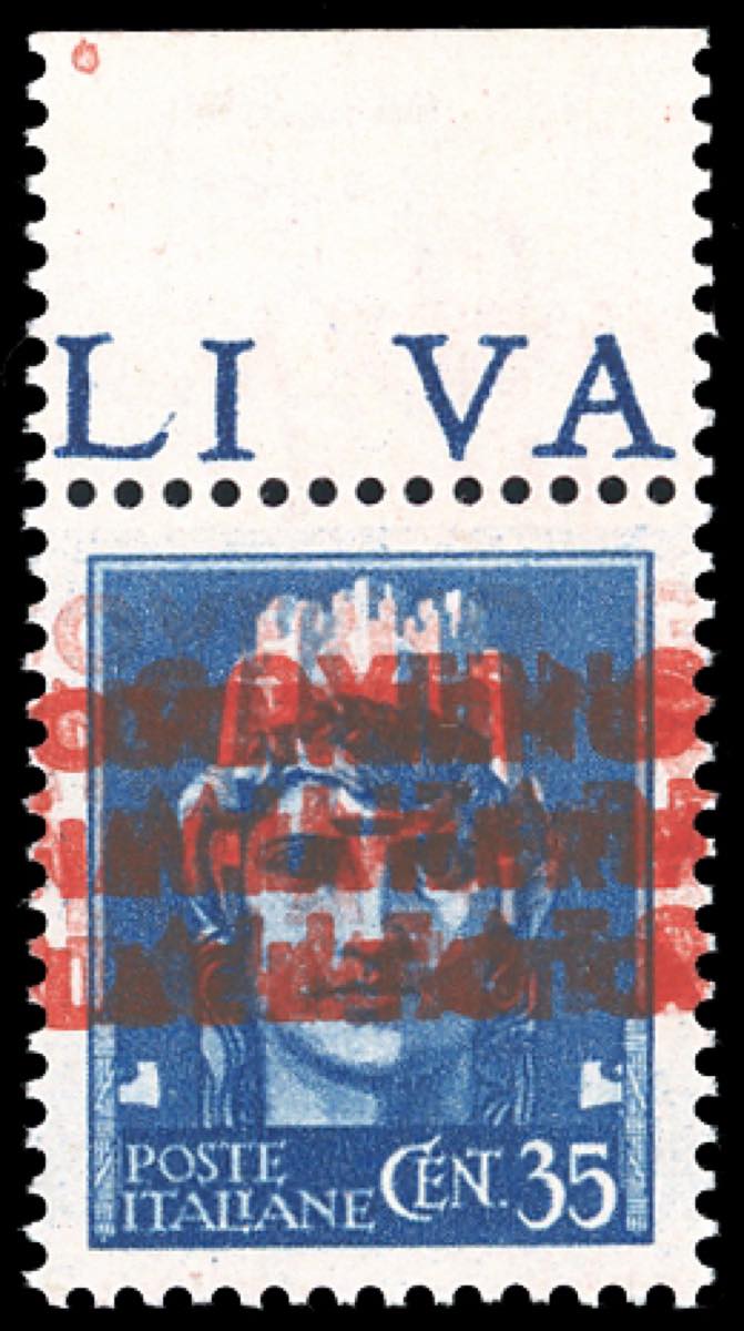 OCCUPAZIONE AMERICANA AMGOT NAPOLI 1944 - 35 cent., quadrupla soprastampa (11e), bordo di foglio, gomma originale integra, perfetto. Raro. ... Read more