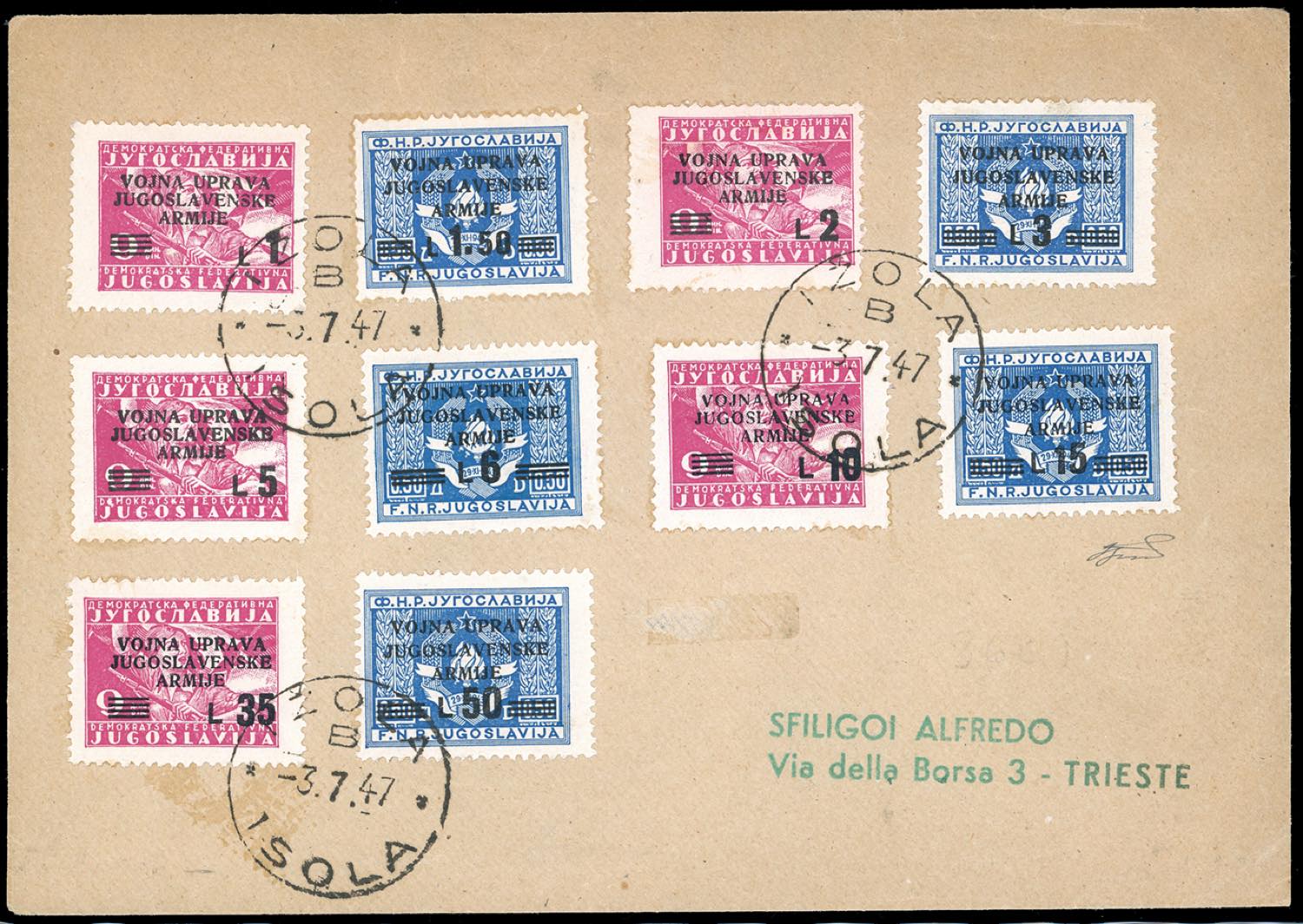 LITORALE SLOVENO AMMINISTRAZIONE MILITARE JUGOSLAVA 1947 - Soprastampati, serie completa (67/76), perfetti, su busta da Isola 3/7/1947 a Trieste. Ferrario.