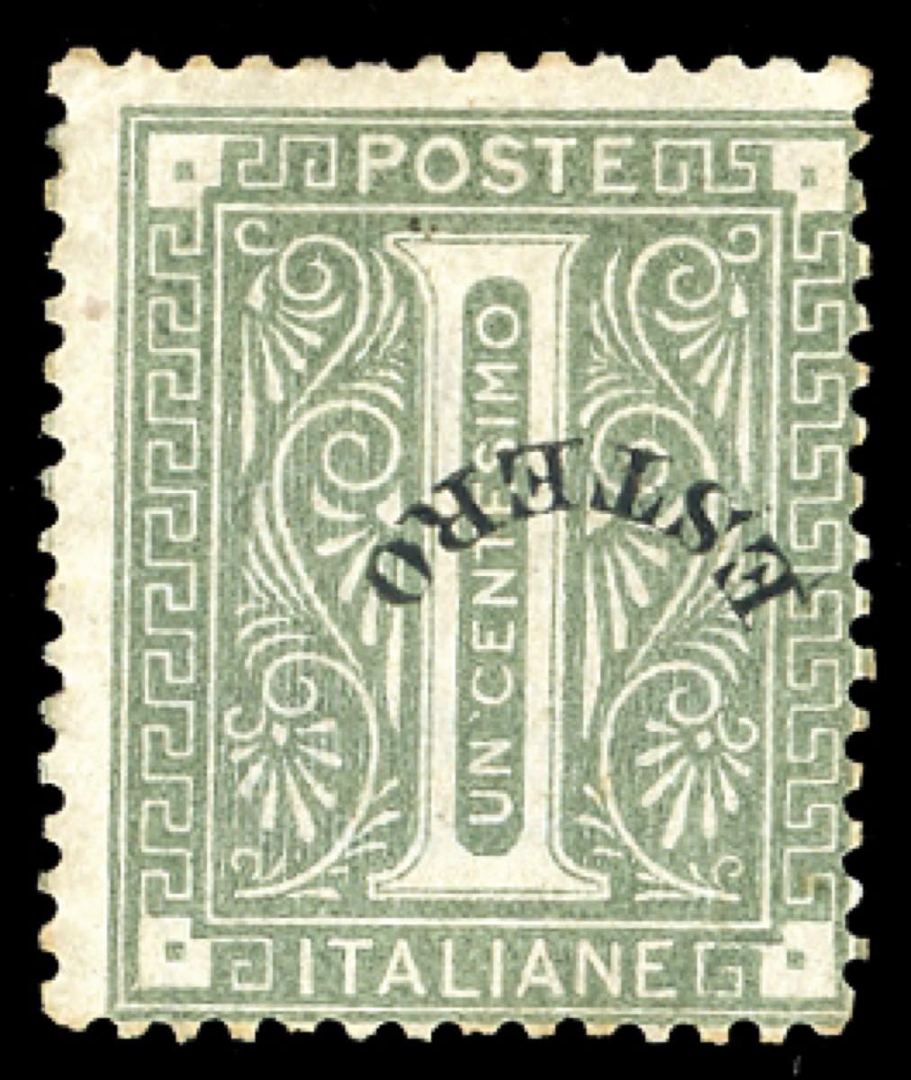 EMISSIONI GENERALI 1874 - 1 cent. De La Rue, SOPRASTAMPA CAPOVOLTA "ESTERO" (1f), gomma originale, lieve traccia di linguella, perfetto. ... Read more