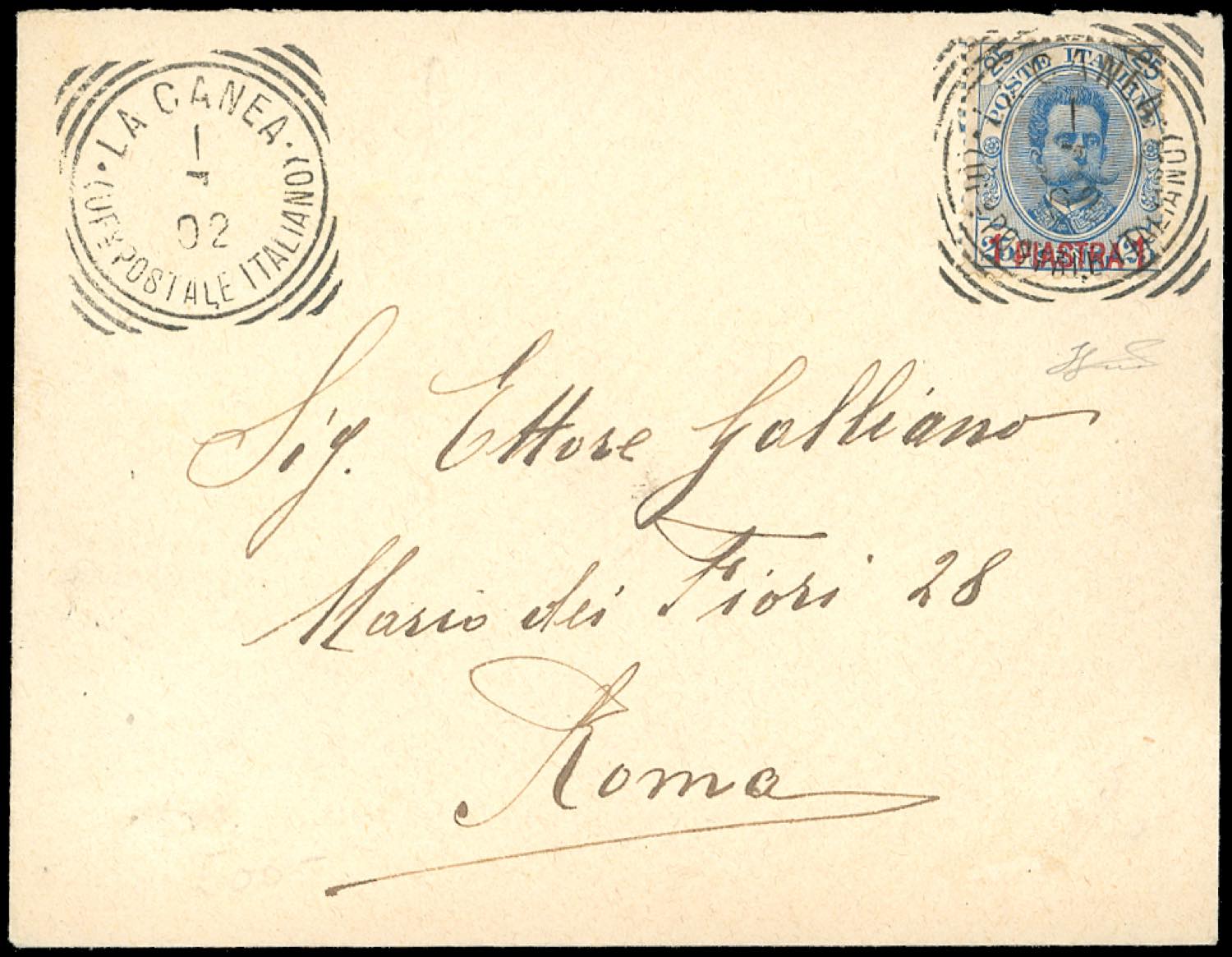 Lot 1789 - LA CANEA 1902 - 1 p. su 25 cent. Umberto I (1), su busta da ...