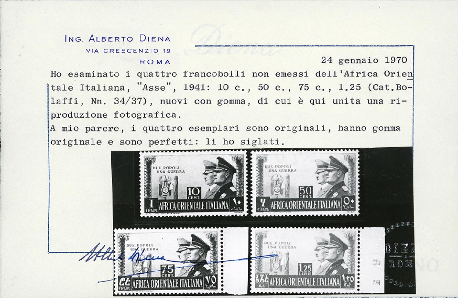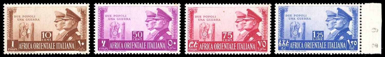 1941 - Fratellanza d'armi, non emessi, serie completa (41/44), gomma originale, lievissima traccia di linguella, perfetti. Rari. G.Bolaffi, ... Read more