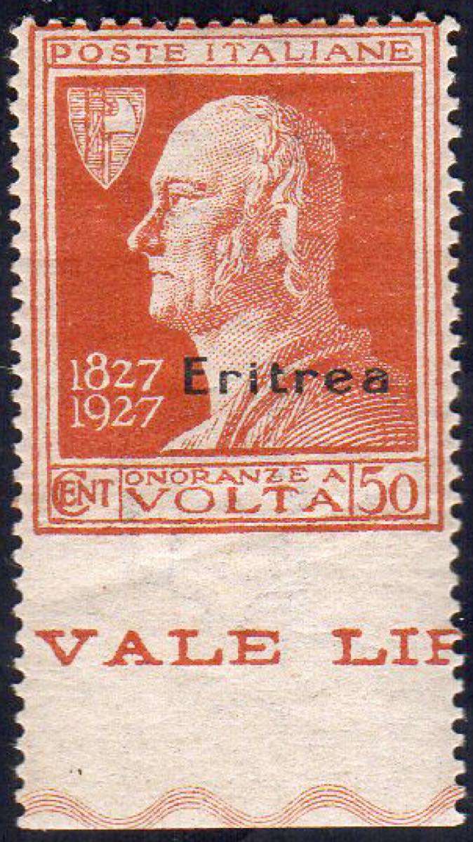 1927 - 50 cent. Volta, non dentellato in basso (121ha), nuovo, gomma originale integra, perfetto. Raro! Ferrario.