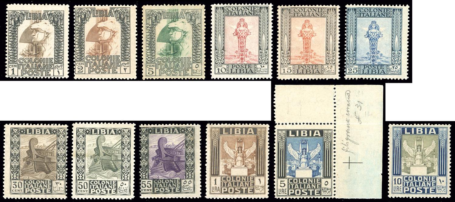 1921 - Pittorica, filigrana corona, serie completa (21/32), gomma originale integra, perfetti, ottima qualità. Cert. Ferrario.