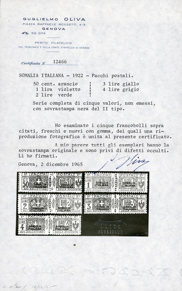 PACCHI POSTALI 1923 - Non emessi, soprastampa del II tipo (10/14), gomma originale integra, perfetti, belli. G.Oliva e Ferrario.