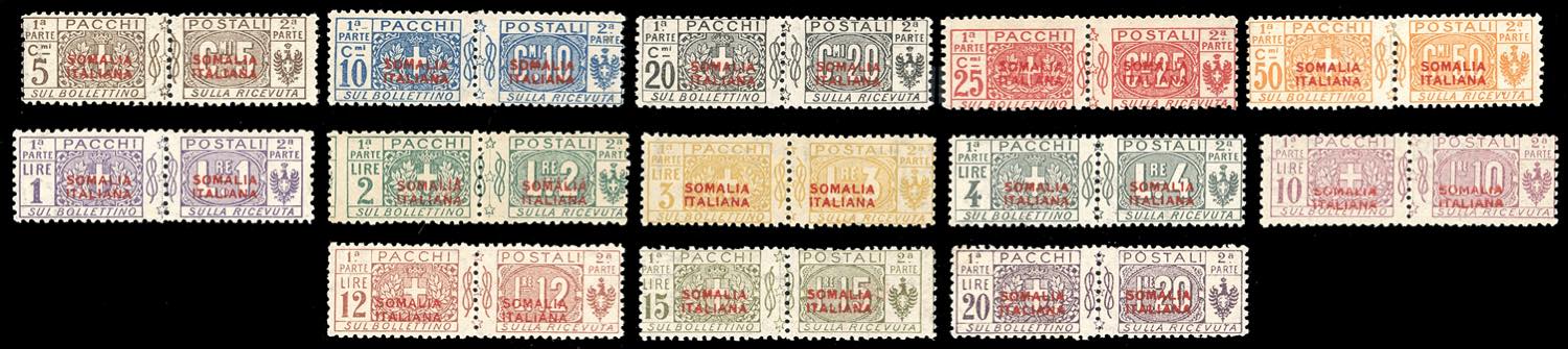 PACCHI POSTALI - Soprastampati in rosso, III tipo, serie completa (30/42), gomma originale integra, perfetti. Molto freschi. Cert. Raybaudi per gli alti valori.