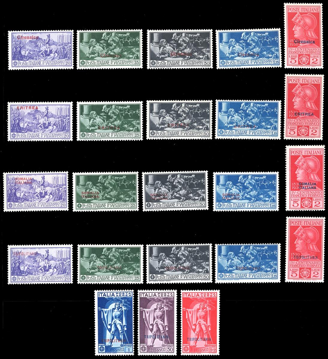 1930 - Ferrucci, giro delle 4 colonie (Cirenaica 63/67,Eritrea 165/169,Somalia 133/137,Tripolitania 64/68+A), gomma originale integra, perfetti.