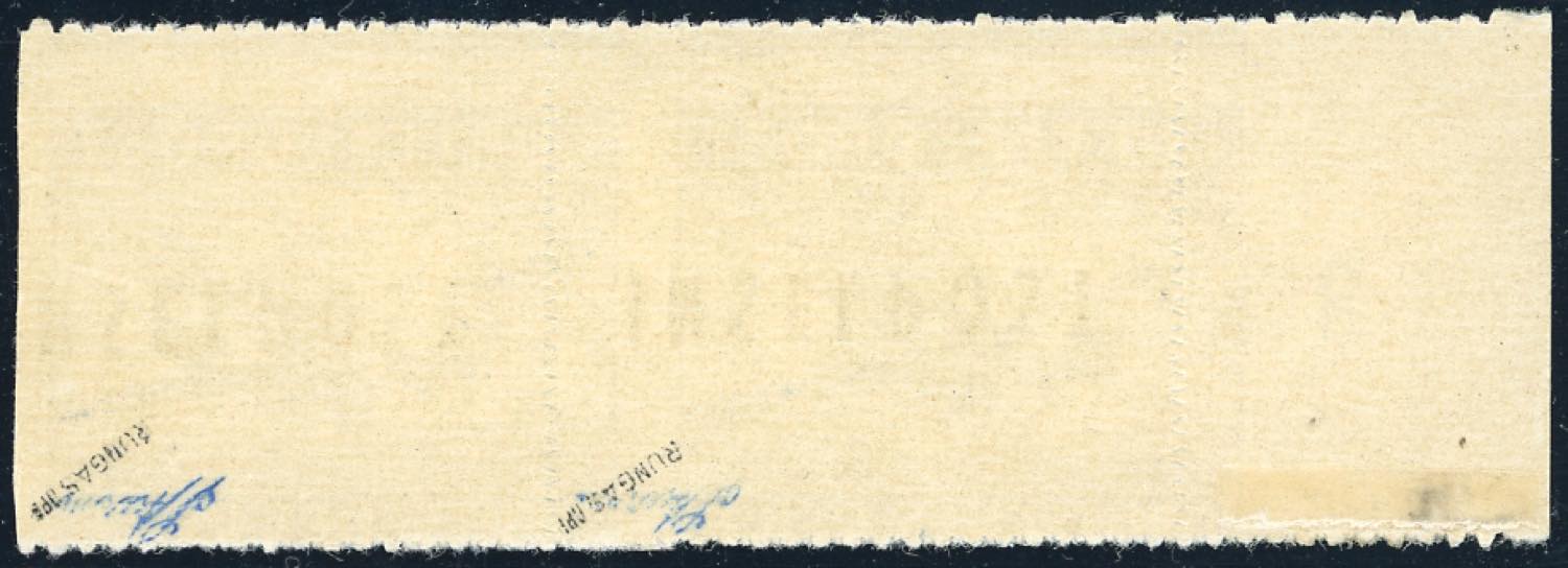 OCCUPAZIONE TEDESCA EGEO 1944 - Inselpost azzurro, emissione di Rodi, soprastampa capovolta e fortemente spostata a sinistra e perforazione fortemente spostata (2aa), coppia orizzontale, bordo di foglio, gomma integra, perfetta. Rara. Cert. Mogler.