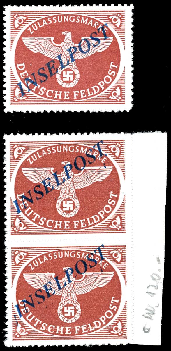 OCCUPAZIONE TEDESCA EGEO 1944 - Inselpost, soprastampa di Agram (5), singolo, gomma originale integra, e coppia, bordo di foglio, gomma originale, perfetti. Chiavarello per il singolo.