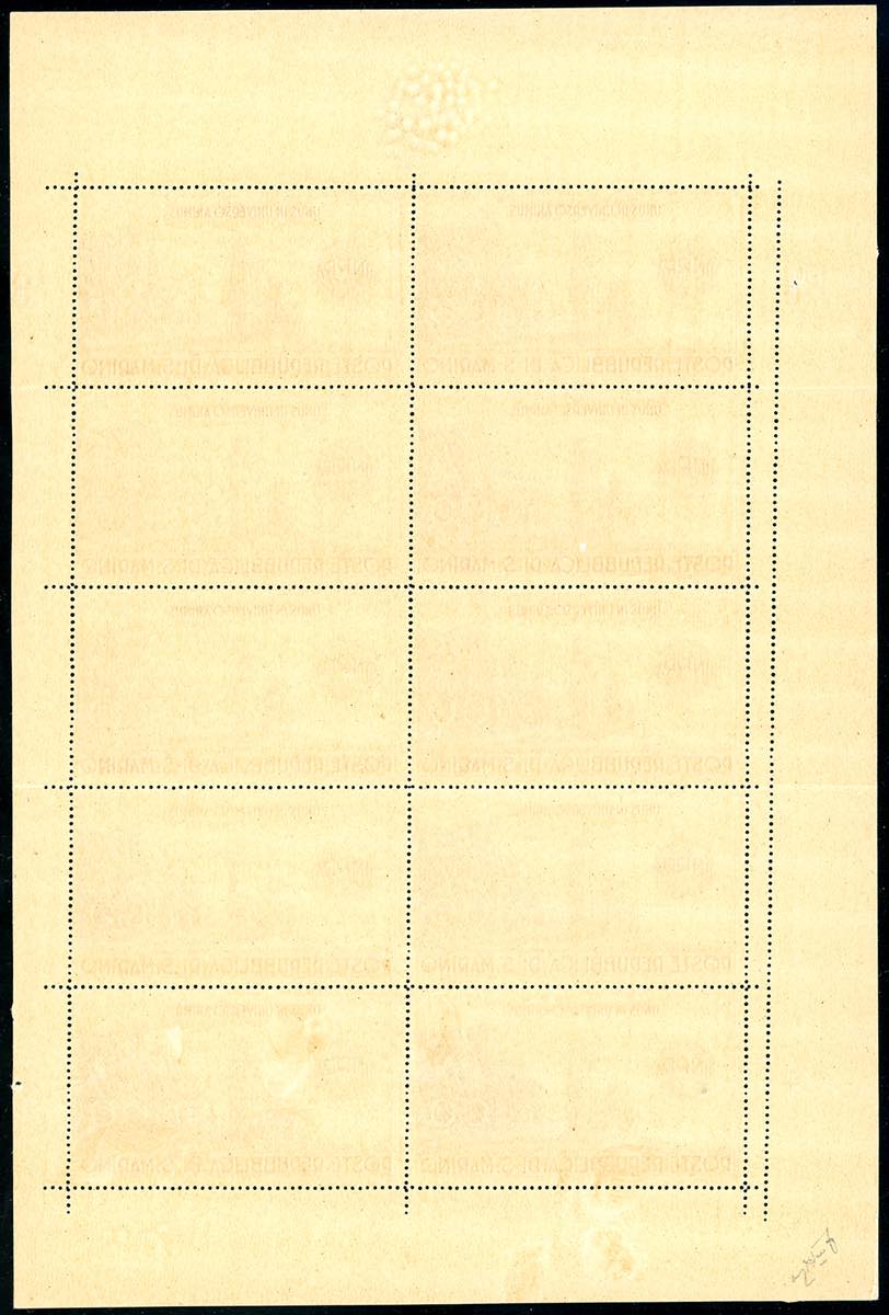 MINIFOGLIO 1946 - 100 lire UNRRA, doppia dentellatura a sinistra (6d), gomma originale integra, perfetto. UNICO ESEMPLARE NOTO. Cert. Avanzo e Raybaudi.