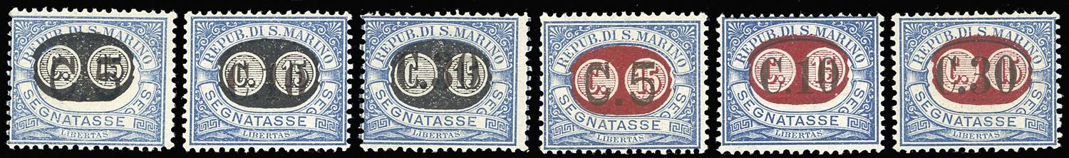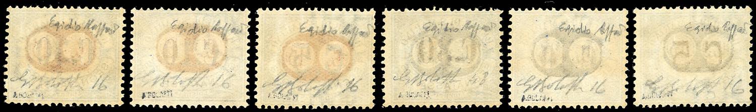 1931 - "Mascherine" soprastampa di saggio non adottata, serie completa di 6 valori non emessi (32A/34A,32B/34B), gomma originale integra, ... Read more
