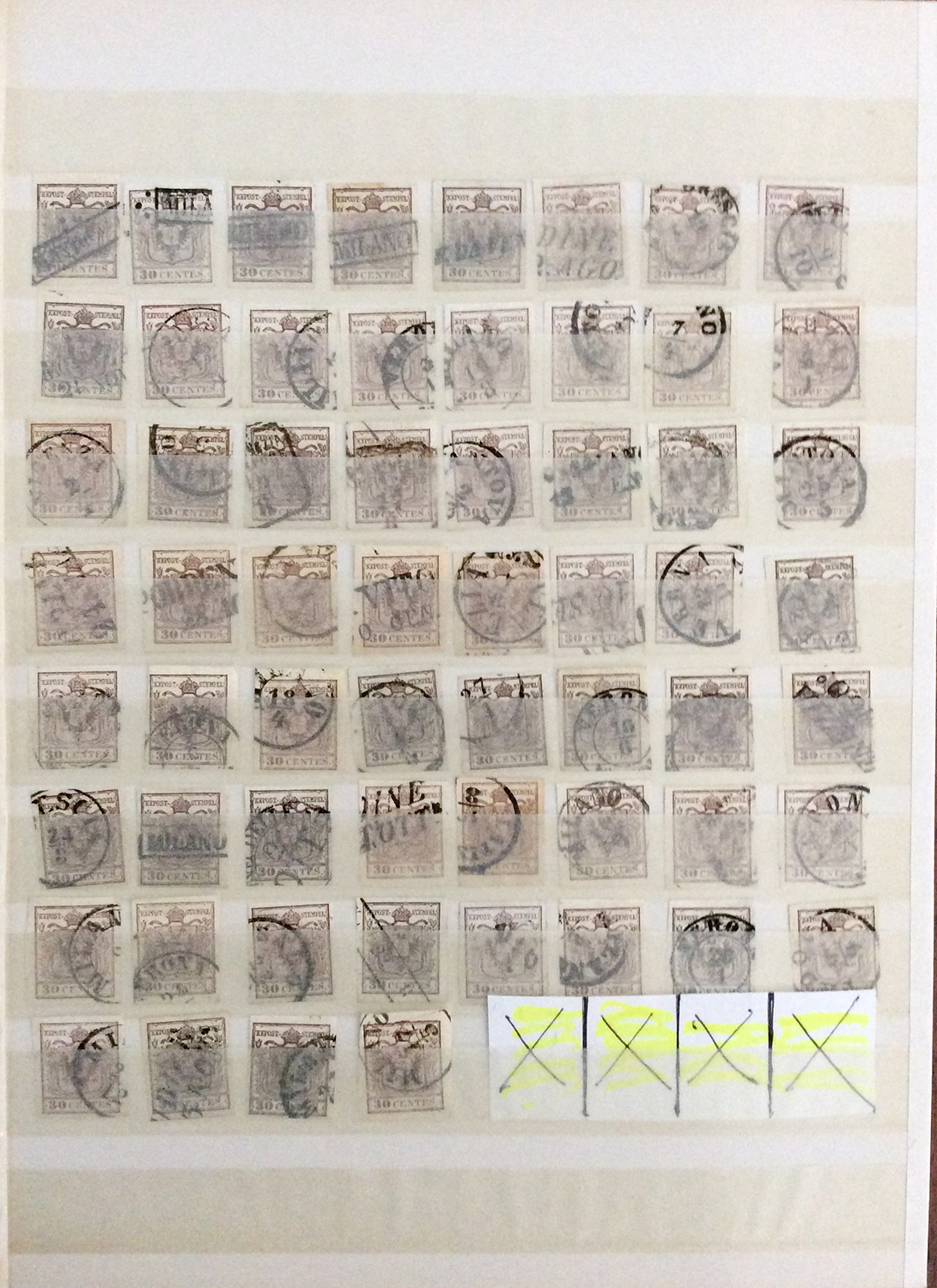 LOMBARDO VENETO 1850/1854 - Raccoglitore con 120 esemplari del 15 cent. e 120 del 30 cent., carta a mano/macchina, bella varietà di colori, qualità generalmente ottima. Alto valore di catalogo.