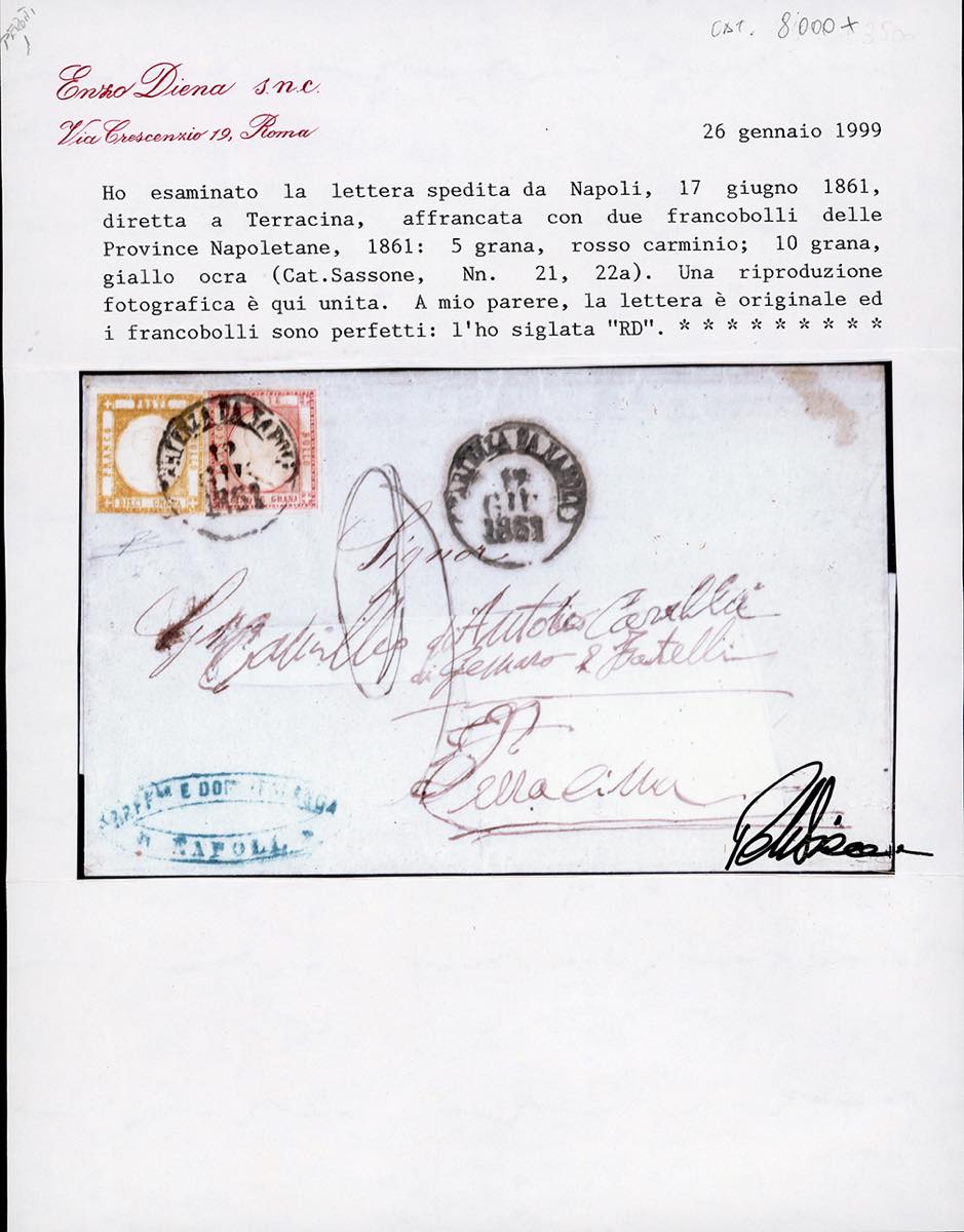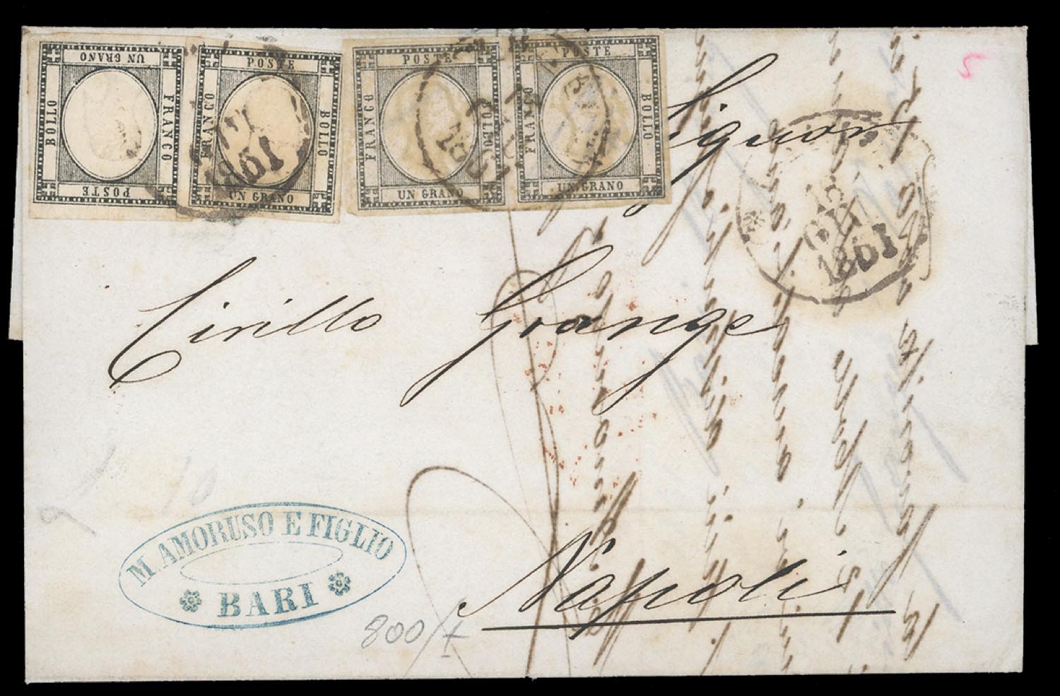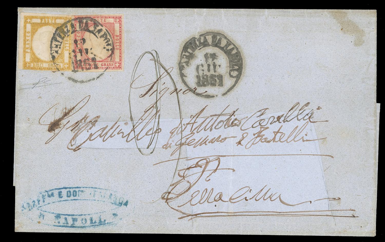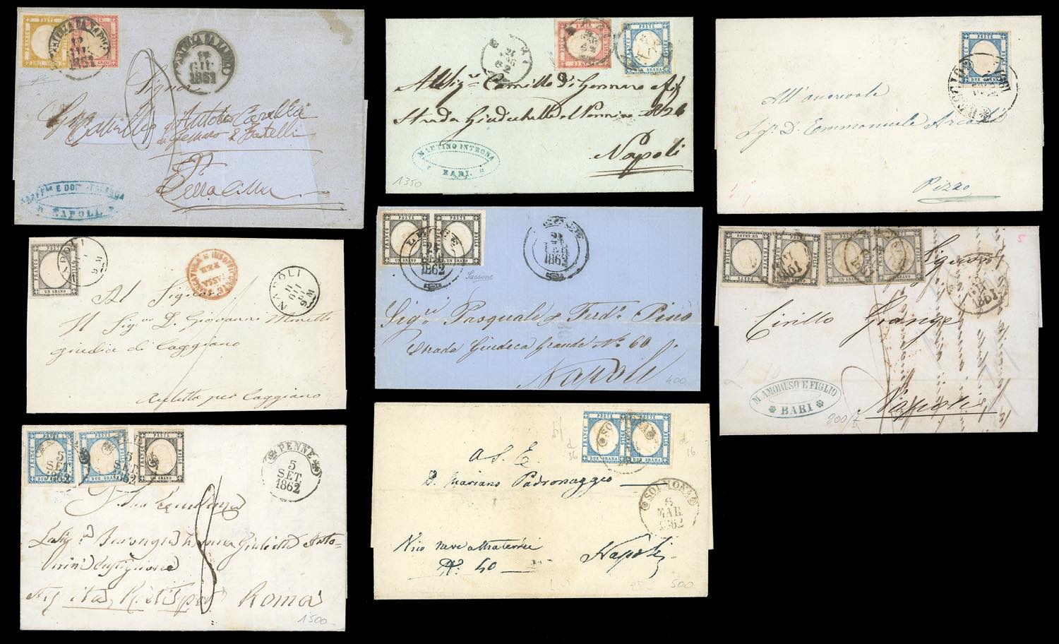 PROVINCE NAPOLETANE 1861/1862 - Bell'insieme di sette lettere e un frontespizio con alcune interessanti affrancature, un certificato. Da esaminare.