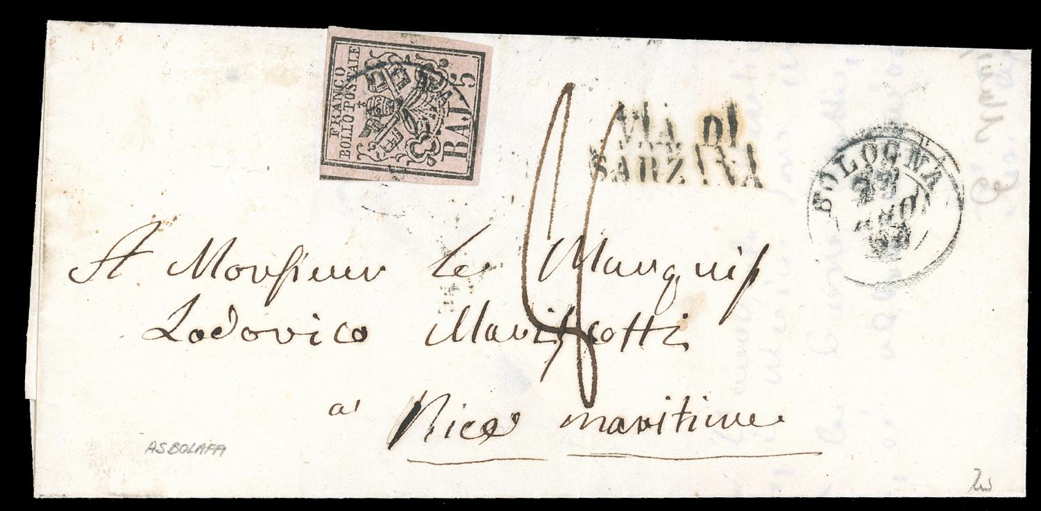 SARDEGNA-CONTEA DI NIZZA 1853/1869 - Insieme di undici lettere: incoming mail, tutte dirette a Nizza, spedite: dal Lombardo Veneto, dal Regno di Napoli, da Parma, dallo Stato Pontificio, dalla Sardegna, dall'Austria e dall'Inghilterra e una forwarding da Nizza a Bari e qui affrancata con 2 gr di Napoli Regno. Insieme molto interessante e di ottima qualità.