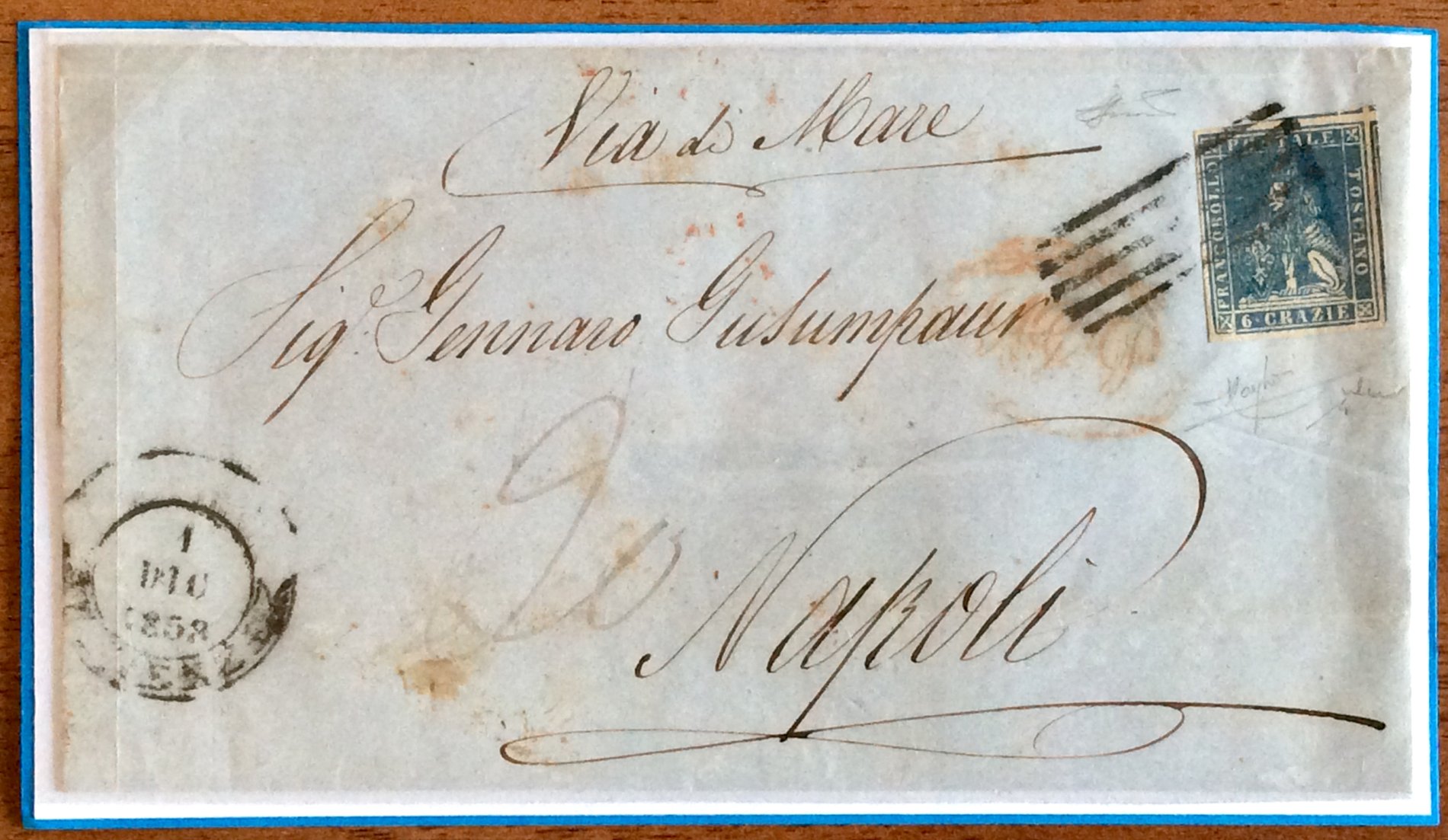 TOSCANA 1852/1858 - Sette lettere affrancate con francobolli del periodo, tutti perfette, firmate da noti periti. Ottima qualità, materiale selezionato. Ex coll. Imperato.