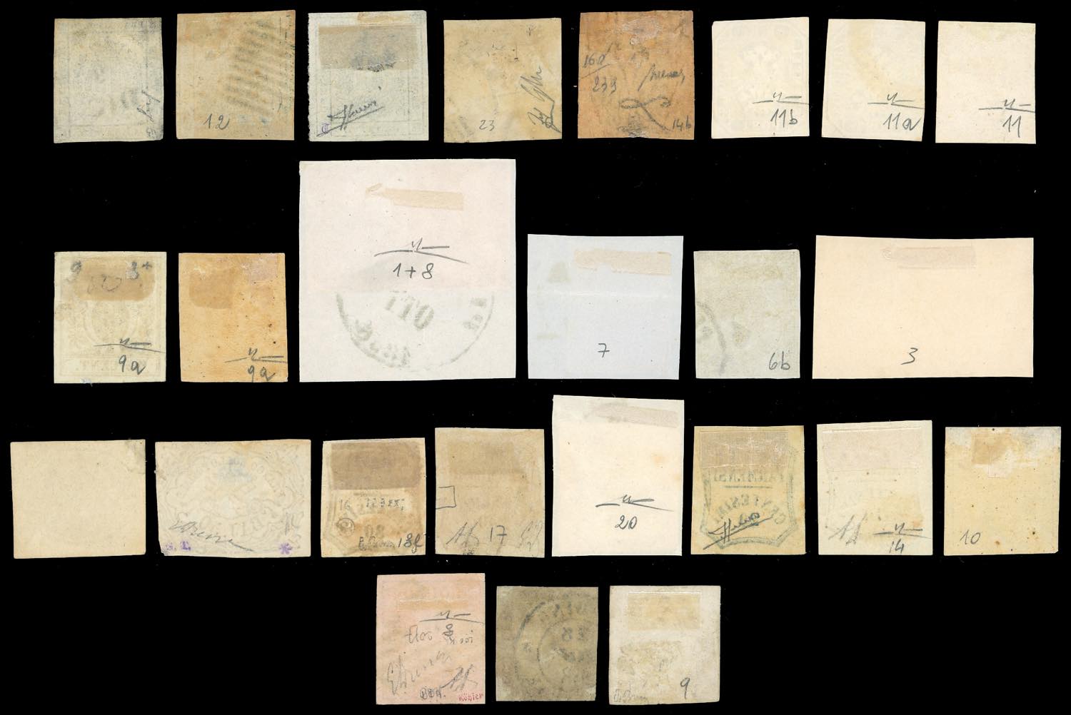 ANTICHI STATI ITALIANI 1852/1859 - Bell'insieme di francobolli medi e rari degli Antichi Stati Italiani, nuovi e usati, in parte difettosi, in parte perfetti, quasi tutti con certificati o attestazioni peritali. Elevatissimo valore di catalogo, base simbolica. Ottimo per dettaglio.