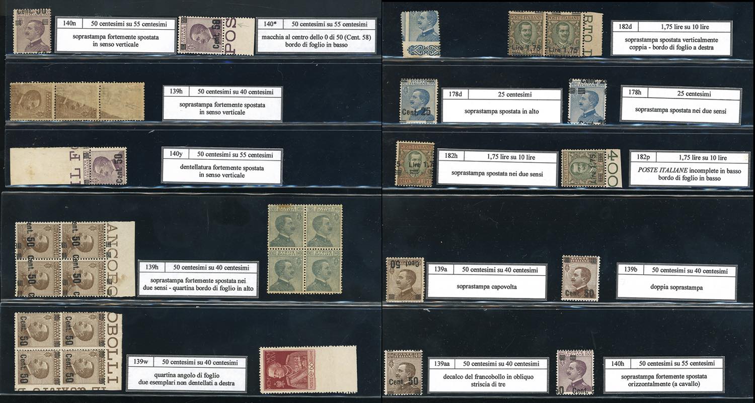 REGNO D'ITALIA 1908/1925 - Lotto di 29 francobolli della serie Michetti, soprastampati e non, con interessanti e non comuni varietà.