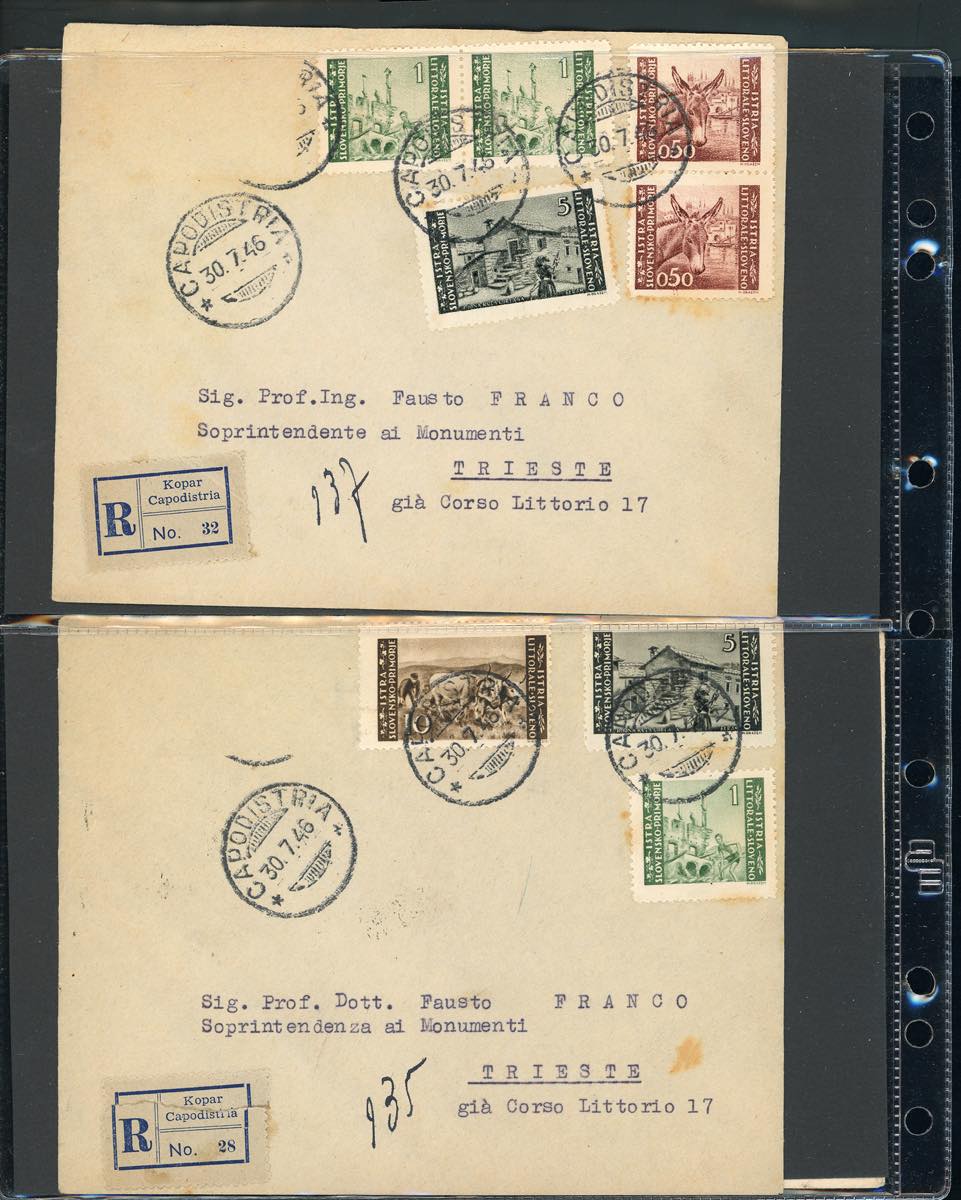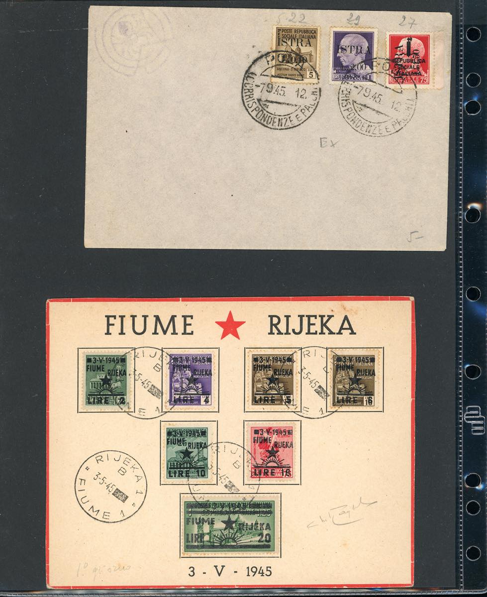 OCCUPAZIONI JUGOSLAVE/ISTRIA E LITORALE SLOVENO 1945/1946 - Bell'insieme di francobolli e lettere affrancate del periodo, in un raccoglitore. Notate alcune interessanti e non comuni presenze, buon valore di catalogo.