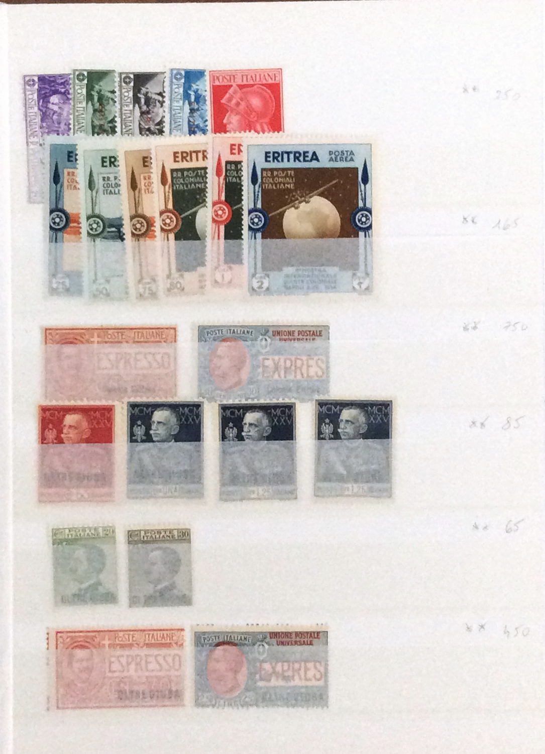 COLONIE ITALIANE 1912/1934 - Bell'insieme di serie complete di qualità generalmente selezionata, con gomma integra, ad eccezione di due con traccia di linguella, in un classificatore. Alto valore di catalogo, ottimo per dettaglio.