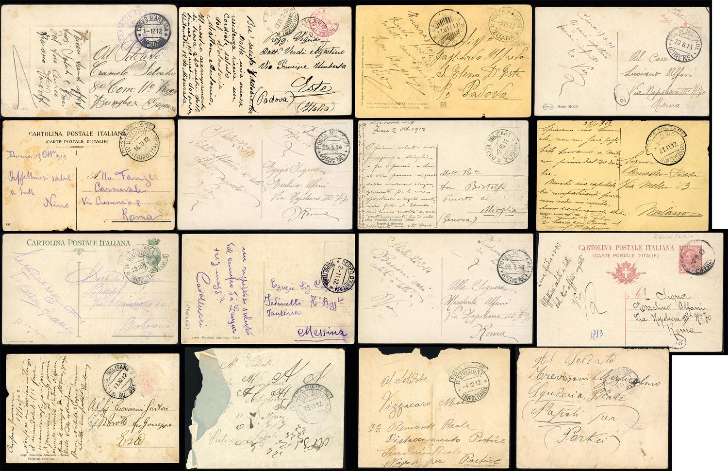 COLONIE ITALIANE POSTA MILITARE IN TRIPOLITANIA 1912/1914 - Sedici cartoline/buste del periodo, una affrancata, con annulli di Posta ... Read more
