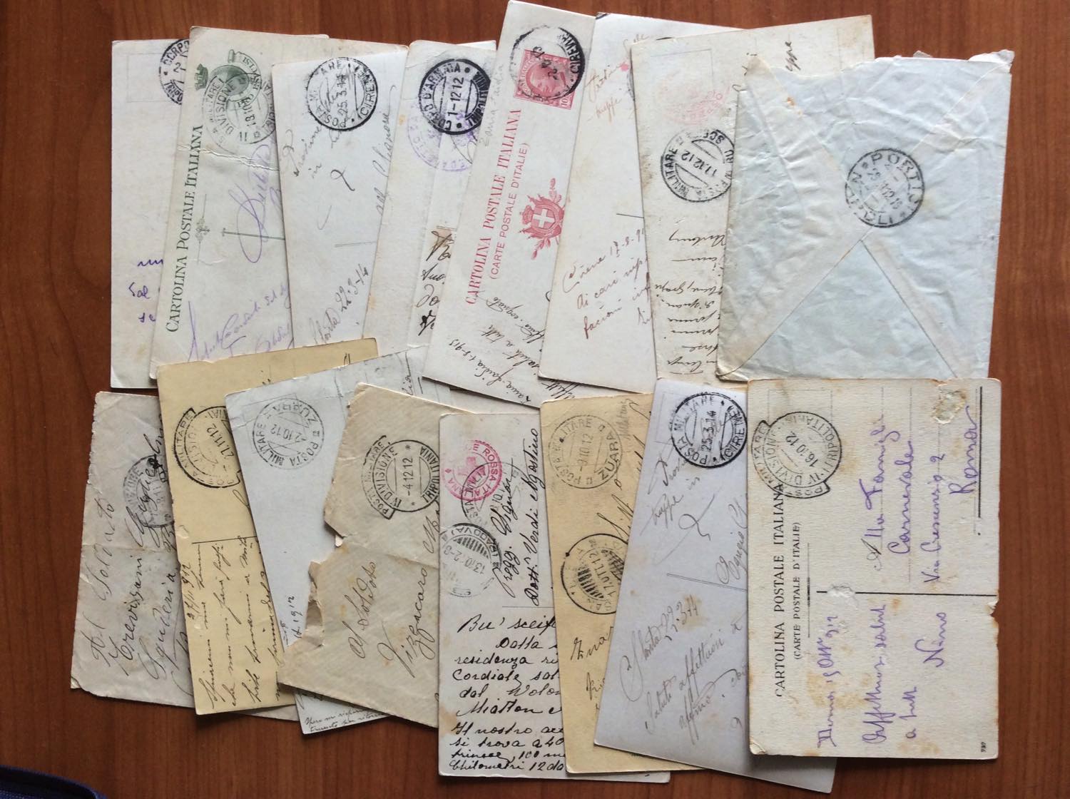 COLONIE ITALIANE POSTA MILITARE IN TRIPOLITANIA 1912/1914 - Sedici cartoline/buste del periodo, una affrancata, con annulli di Posta Militare.