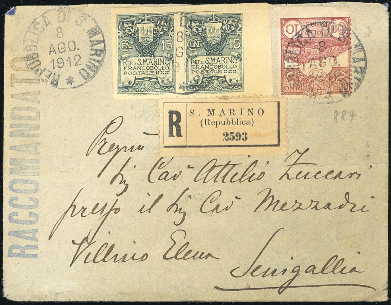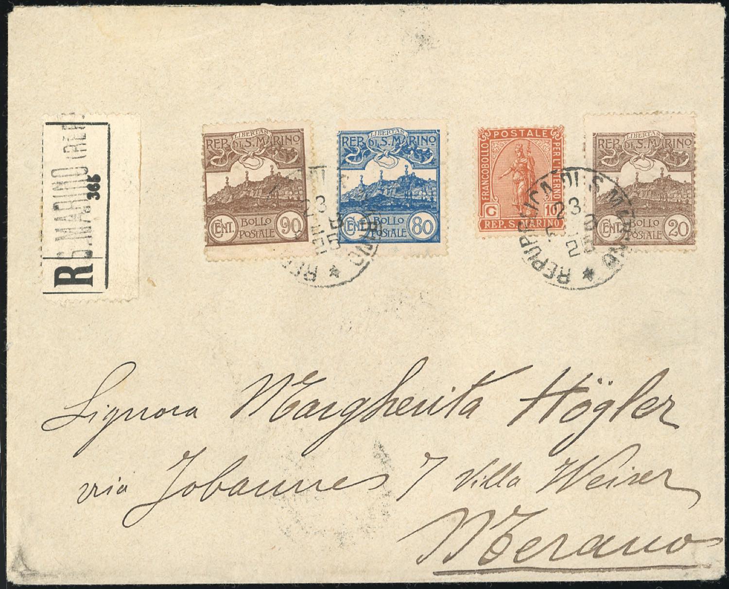 Lot 2423 - SAN MARINO 1912/1925 - Cinque buste raccomandate, tutte con ...