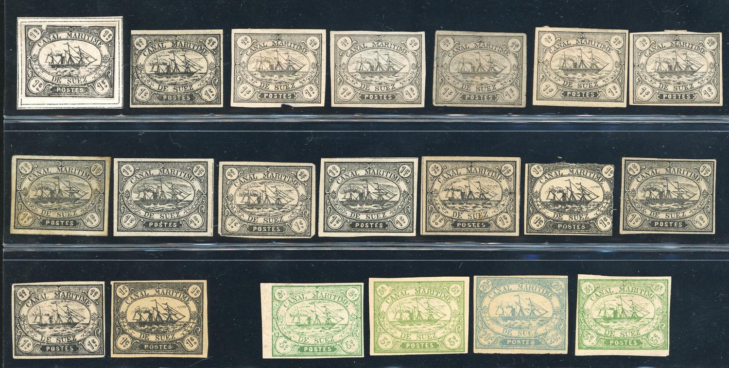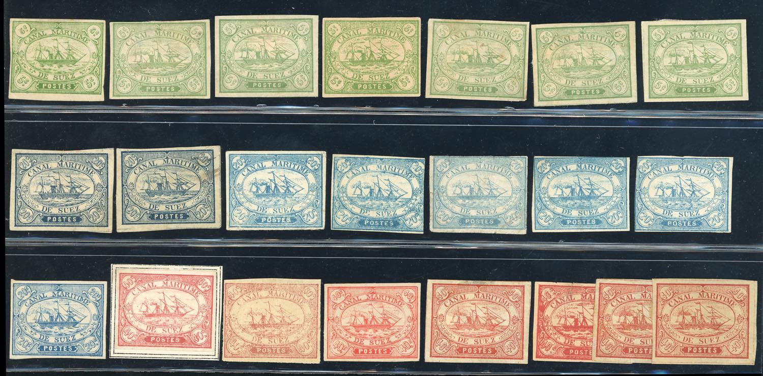 EGITTO-CANALE DI SUEZ 1868 - Insieme di 65 francobolli e ristampe del periodo. Qualità mista, da esaminare.