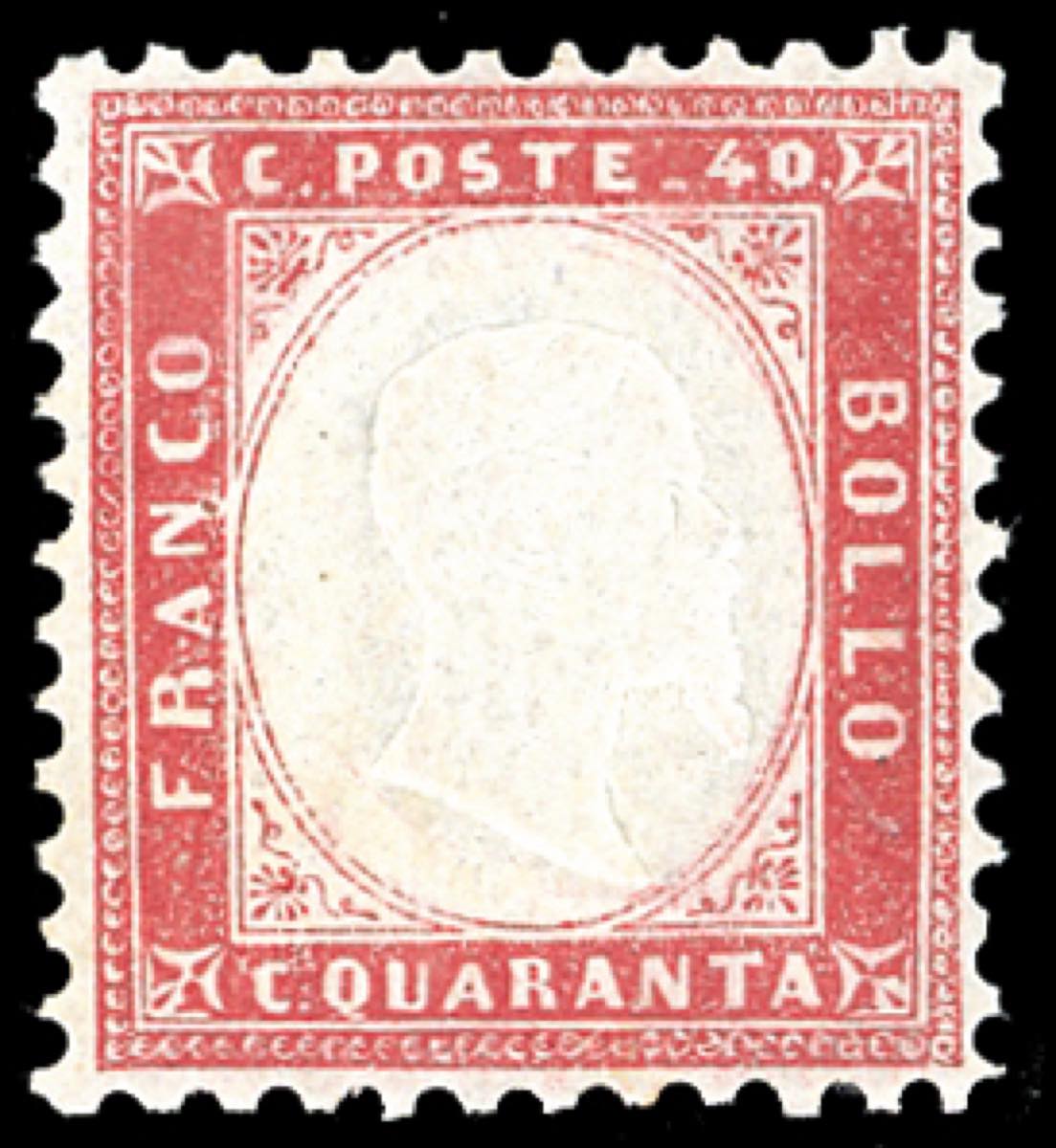 Lot 710 - 1862 - 40 cent. rosso carminio (3), ottima centratura, ...