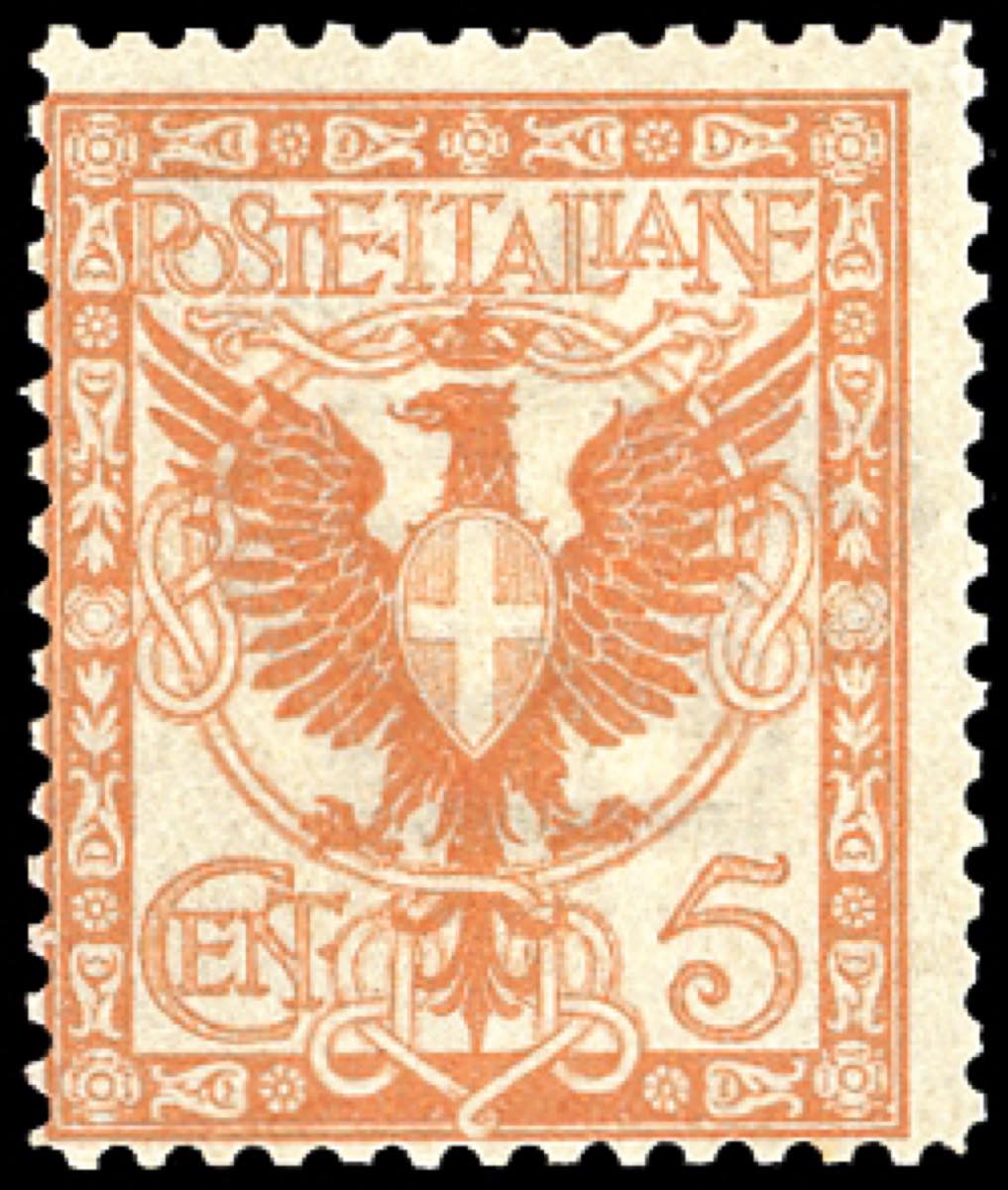 Lot 826 - 1901 - 5 cent. arancio Floreale, errore di colore (70D), ...