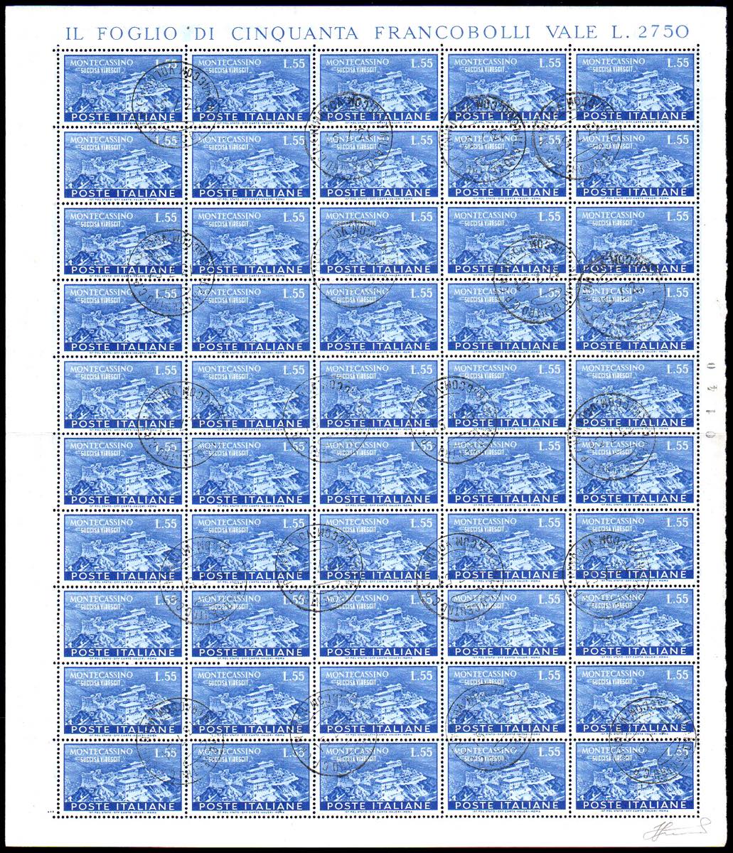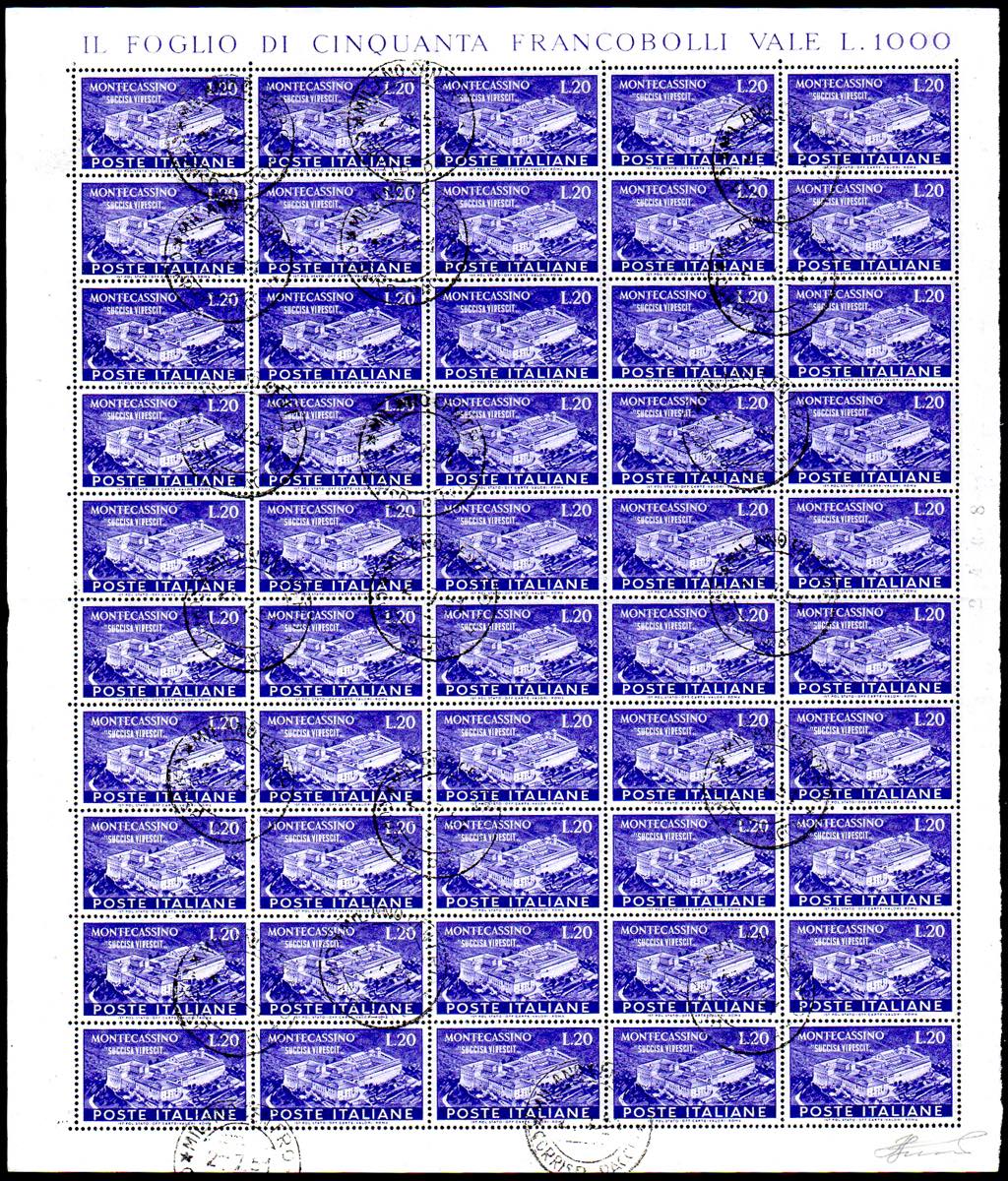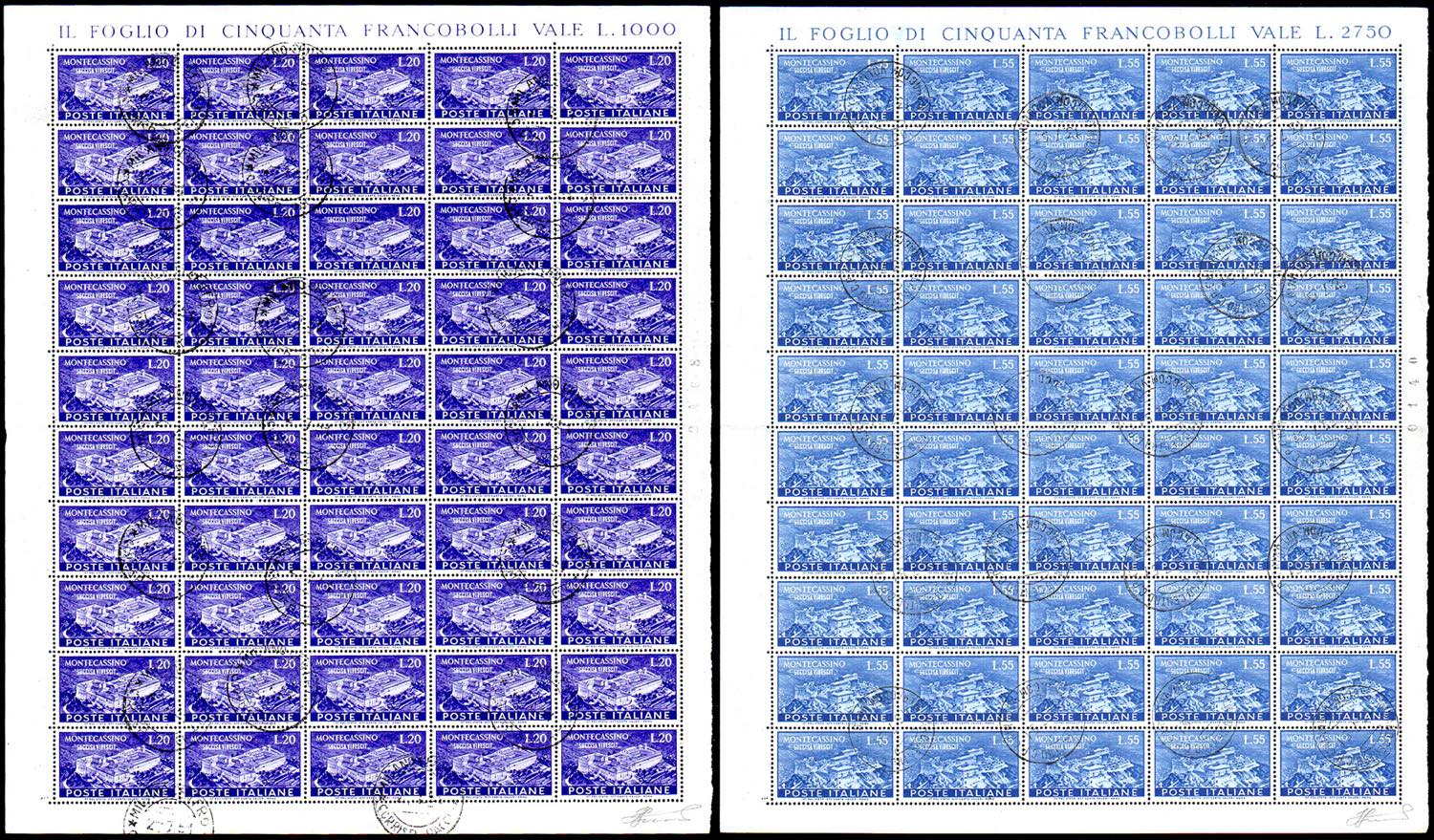 1951 - Montecassimo, serie completa in fogli di 50 esemplari (664/665), usati, perfetti. Molto belli e rari! Ferrario.