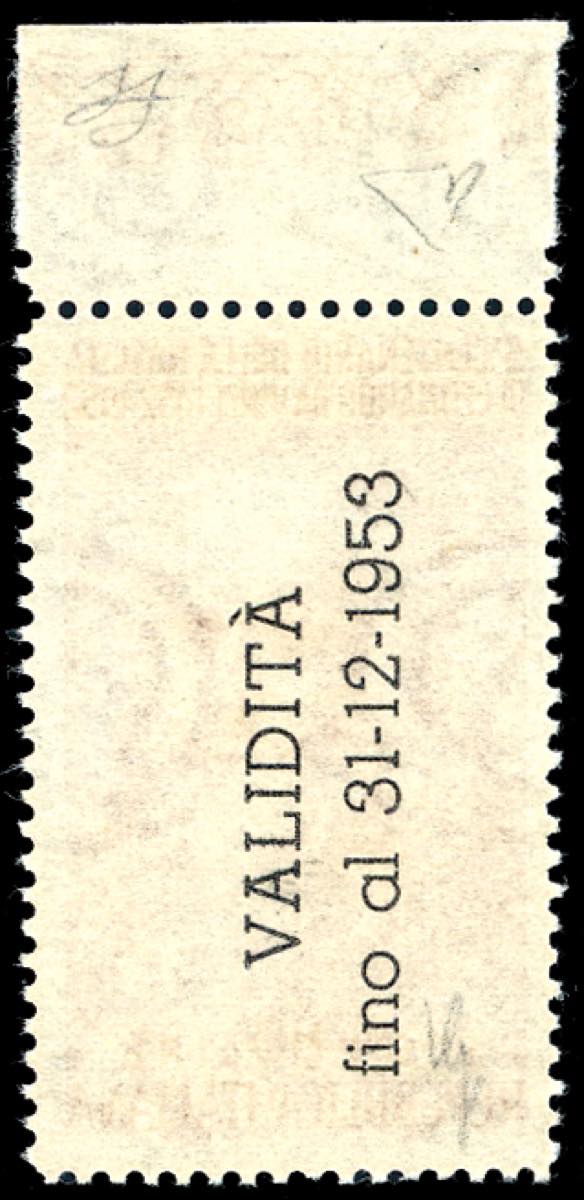 1952 - 80 lire Leonardo, al verso la dicitura "B" relativa alla validità postale (688,riquadro;Sass.Spec.P20B), bordo di foglio, gomma ... Read more