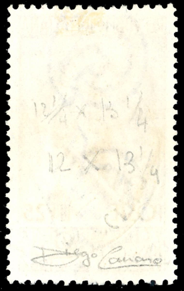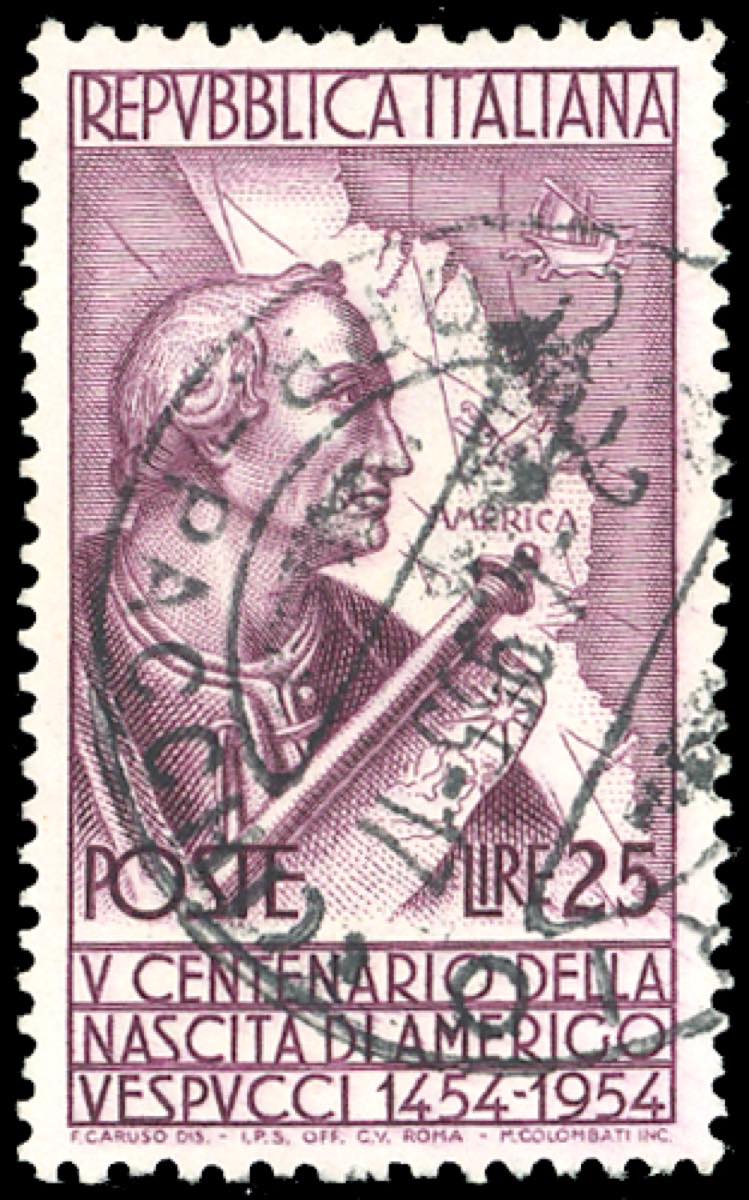1954 - 25 lire Vespucci, dent. 12 1/4 x 13 1/4 (749/II), perfetto, usato a Sondrio 2/4/1955. Estremamente raro, pochissimi esemplari ... Read more