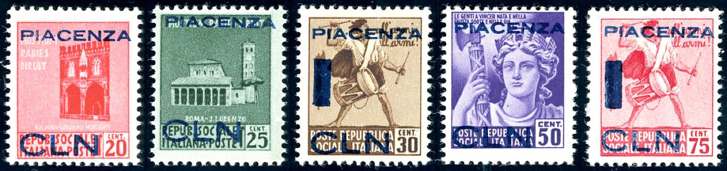 PIACENZA 1945 - Monumenti Distrutti, serie completa, soprastampati "PIACENZA C.L.N." (Errani Raybaudi 79/83), nuovi, gomma originale ... Read more