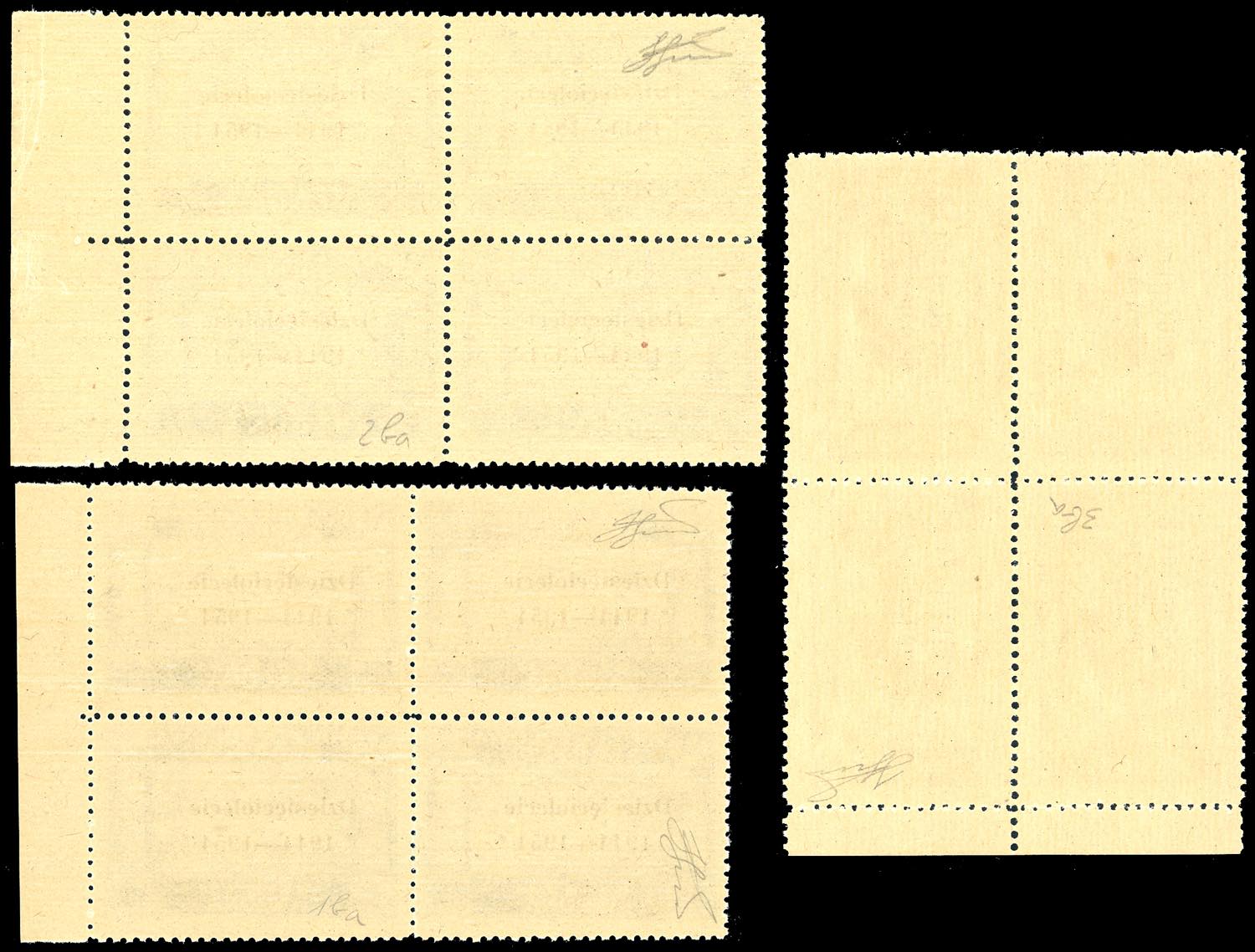 GOVERNO DI LONDRA 1954 - Serie completa, soprastampa nera, blocchi di quattro, bordo di foglio, con un esemplare con varietà tratto tipografico sopra il 5 di 1954 (1/3+1ba/3ba), nuovi, gomma originale integra, perfetti. Molto belli e rari. Cert. Ferrario.