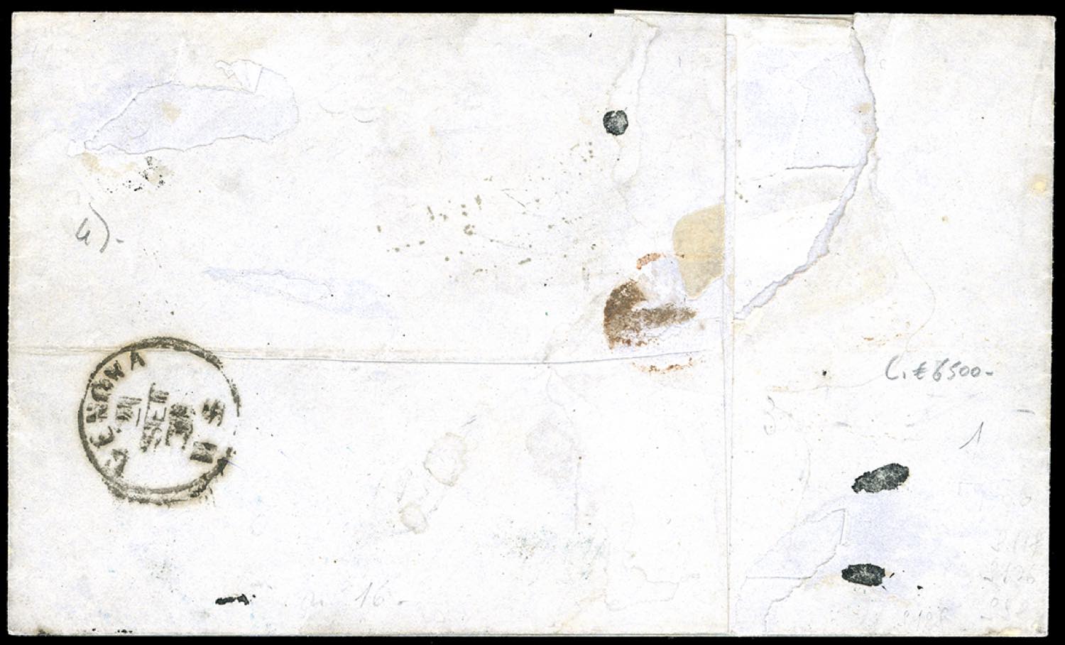 1859 - 10 cent. rosa, punto dopo la cifra (9), due esemplari, perfetti, su lettera da Reggio 20/9/1859 a Genova. I francobolli vennero ... Read more