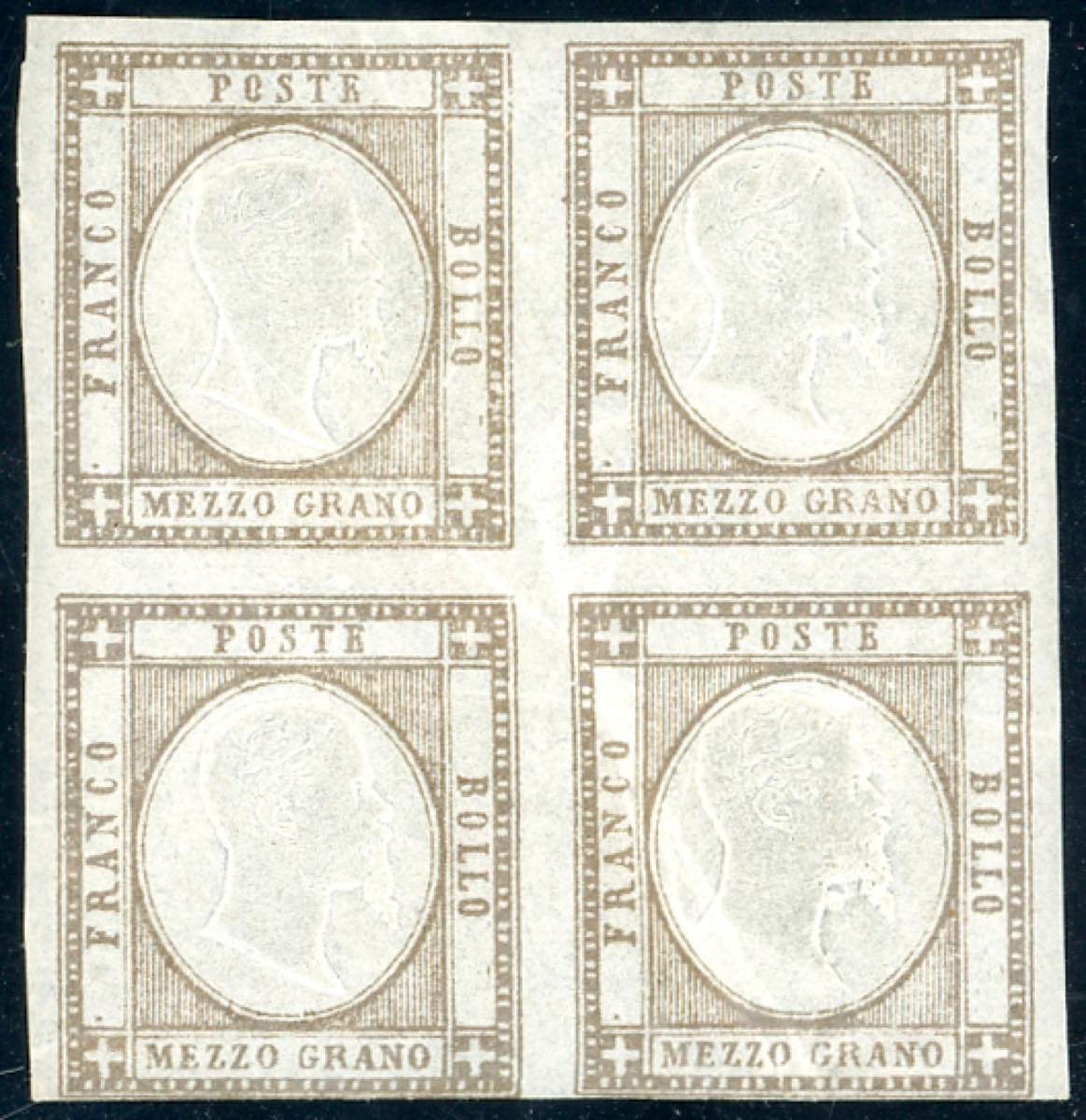 Lot 237 - 1861 - 1/2 grano bruno grigiastro (18c), blocco di quattro, ...